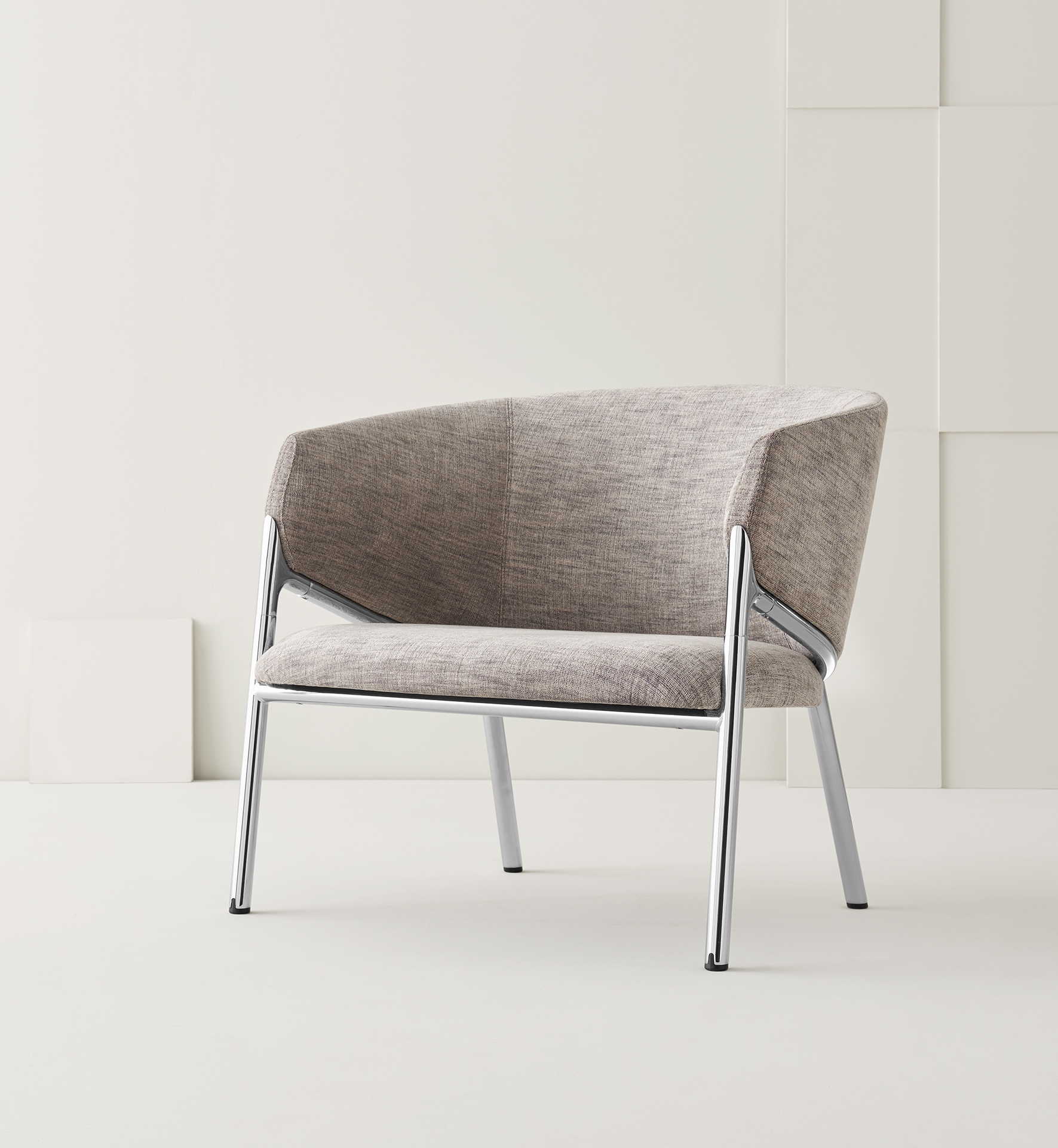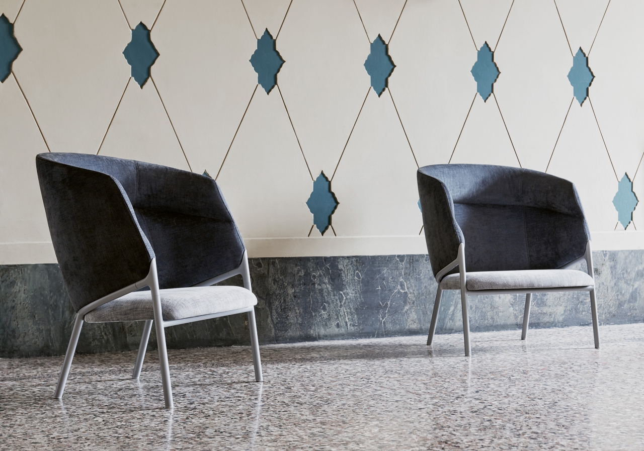 A die-cast aluminum element joins the front legs and circular structure; a detail that for its originality and appeal inspires the name of the collection. The Hammer lounge chair is available with a low or high back, thus fulfilling synergistic needs. Its variety makes it perfect for any environment, from contract to home, from hotel room to meeting room... elegant in every situation.
