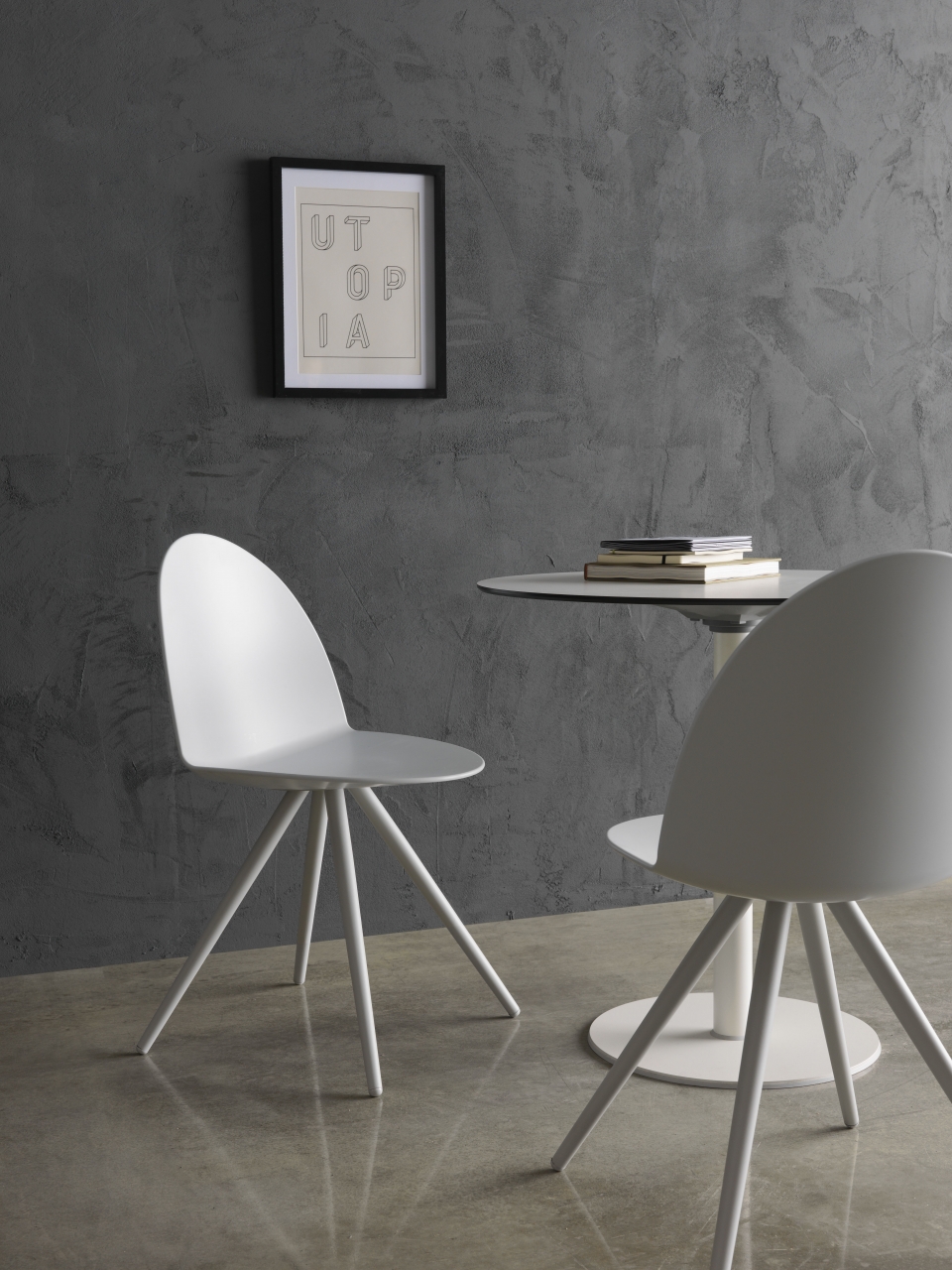 An eclectic collection of seating with delicate soft designed lines, comfortable in a variety of applications. The shell, in polypropylene or upholstered, is combined with numerous bases and multiple seating for meeting, dining or public waiting environments.