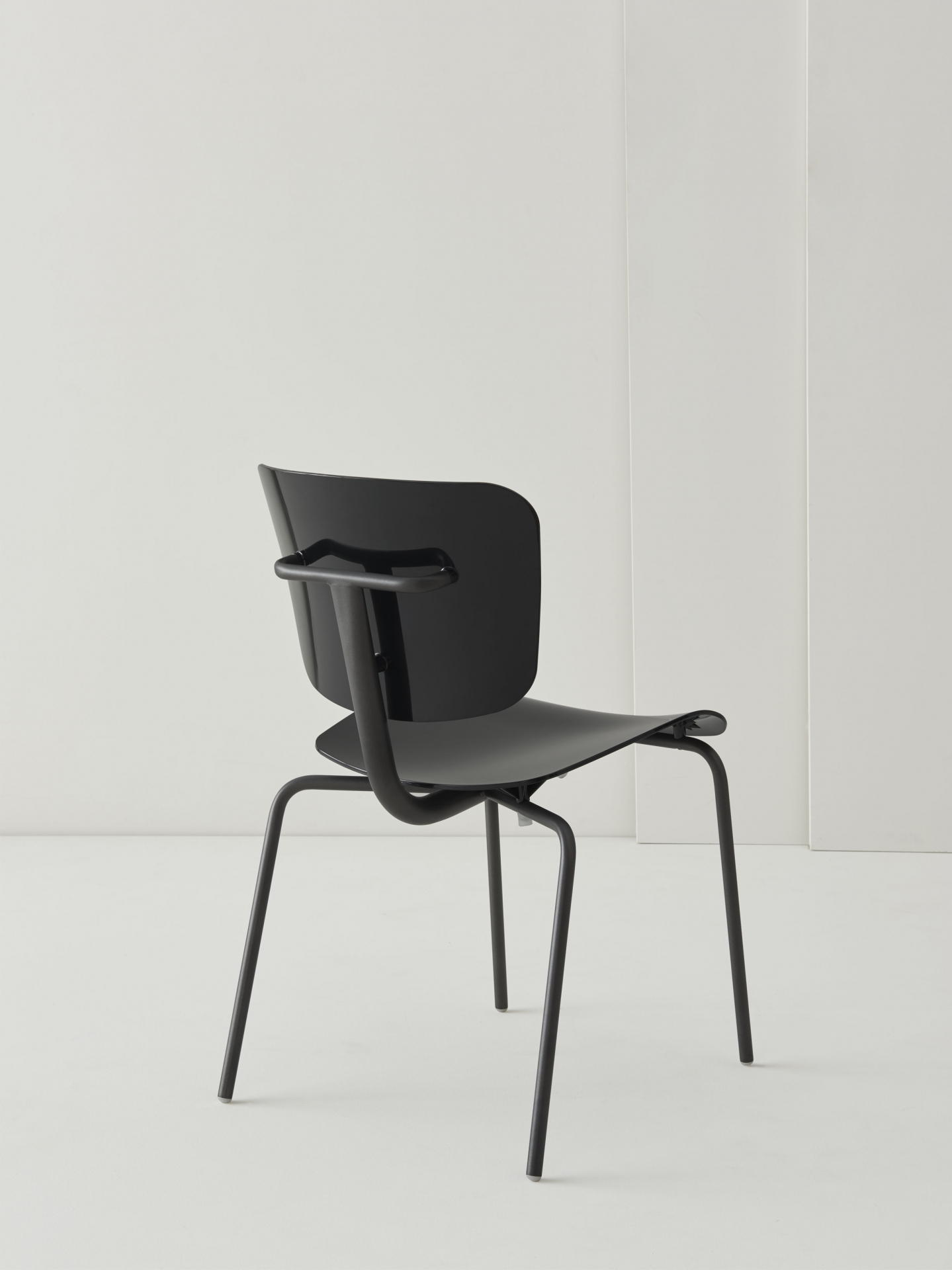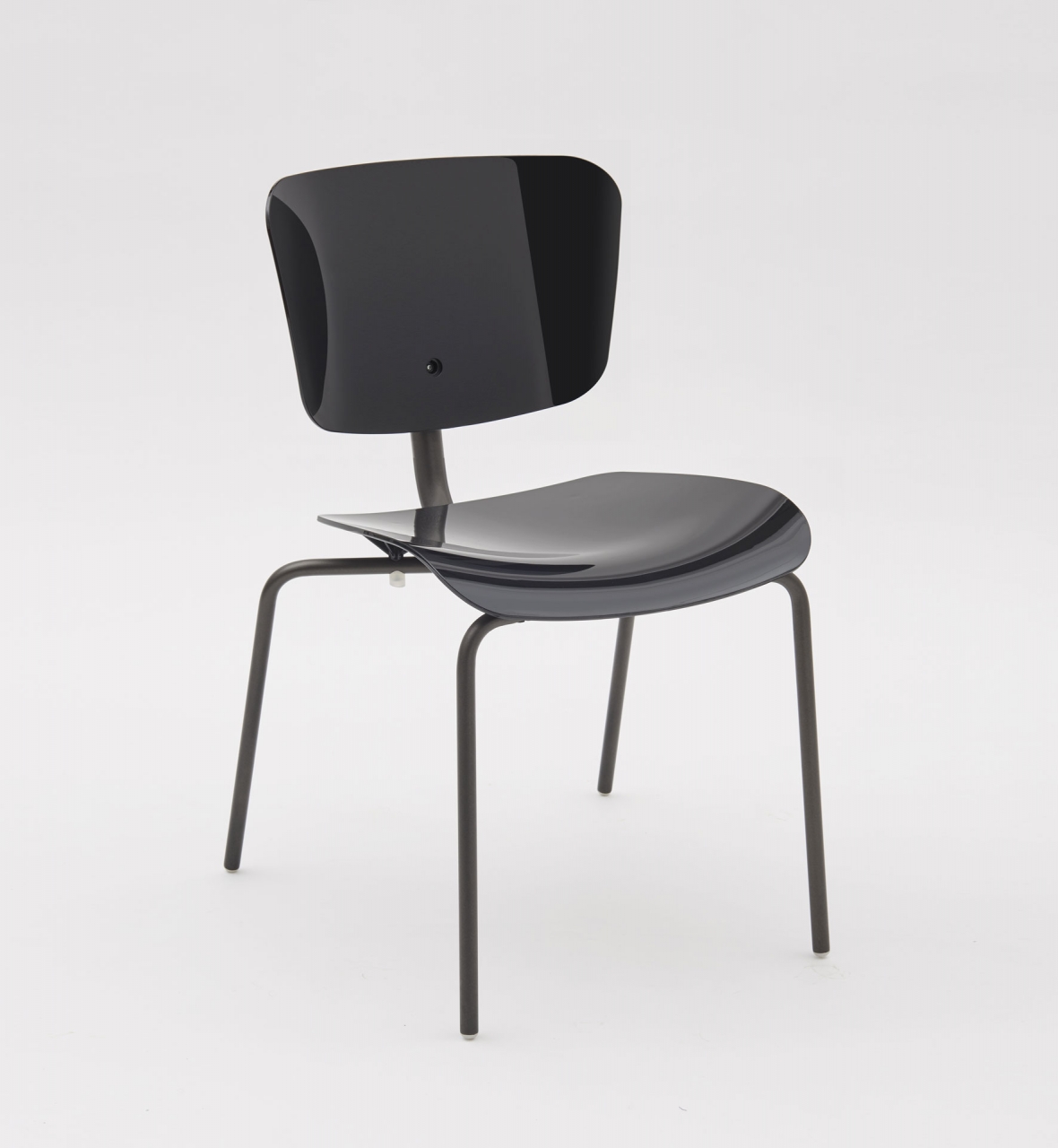 Slide exemplifies a chair that belongs to the collective memory and makes it current. With a modern material, such as polycarbonate, it enhances the essentiality of a chromed or powder coated steel frame, characterized by its minimal shape and the attention to the details. Aesthetically refined but also practical, Slide has a handle in the back that allows for ease of movement.