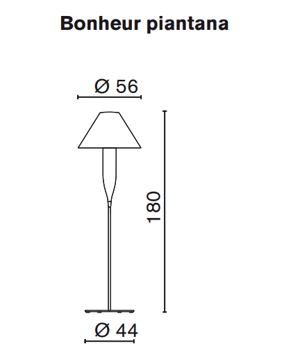“Bonheur”, a floor lamp for indoor and outdoor use. It has a diffuser made of two polyethylene parts, created by rotational moulding, and a structure in grey painted metal.