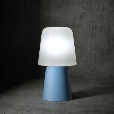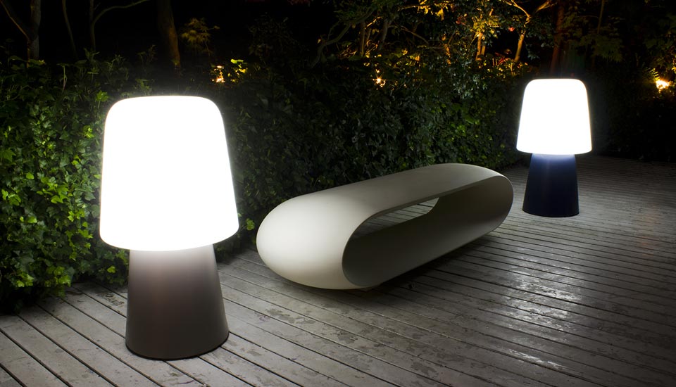 The PicNic floor lamps are characterised by strong volumes that give away the plastic sense of the material. PicNic embraces Serralunga's logic and transforms an oversize volume into an icon of modern table lamps by moving them outdoors. The solidity of PicNic, in perfect technological correspondence with rotational moulding, matches the weightless lightness of plastic. The base is available in several colours, to be used as a group to define a chromatic landscape in the surrounding area.