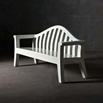 The classic English wooden ""bench"" is the formal and conceptual reference used. We have tried to provide a solution to a series of formal, functional, productive and commercial problems, but above all, the project was based on an attempt to evoke the ""idea"" of the garden bench."