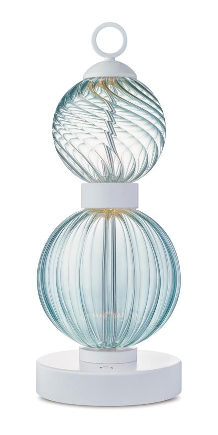 Glass spheres of various colours, finely worked, shape the light through transparency.