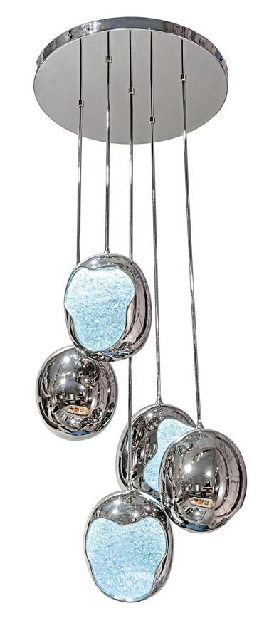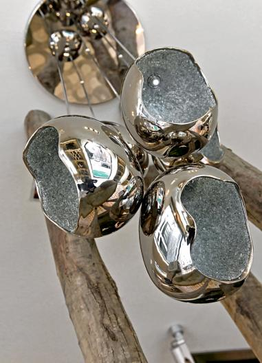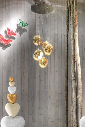 Glass spheres of various colours, finely worked, shape the light through transparency.