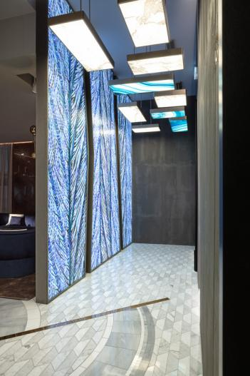 Glass spheres of various colours, finely worked, shape the light through transparency.