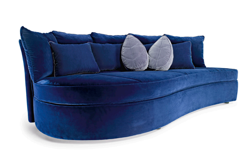 Sofa, frame made of solid timber and plywood. Variable densities polyurethane foam padding. Nr. 5 pillows 50x50 and nr. 4 dim. 40x40cm cm in mixed feather.