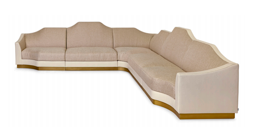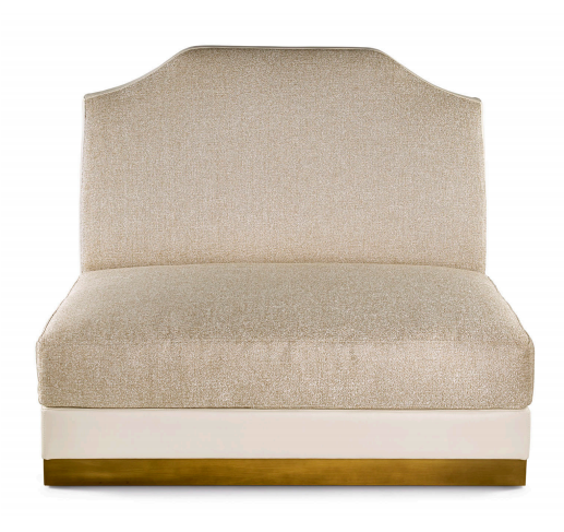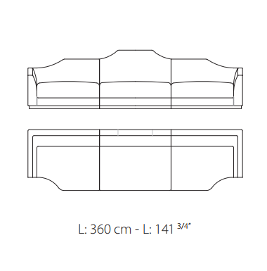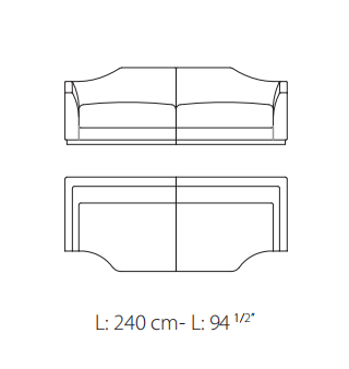 Sofa, frame made of solid timber and plywood. Variable densities polyurethane foam padding. Nr.1 pillow 50x50 cm and nr.1 pillow 50x35 cm in mixed feather. Skirting in antique bronze or antique finish distressed paint.