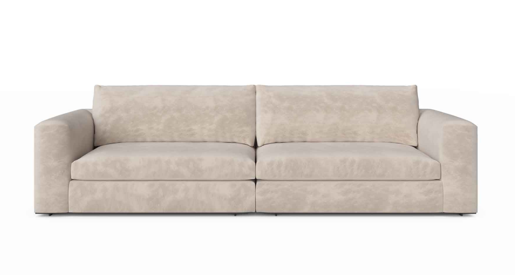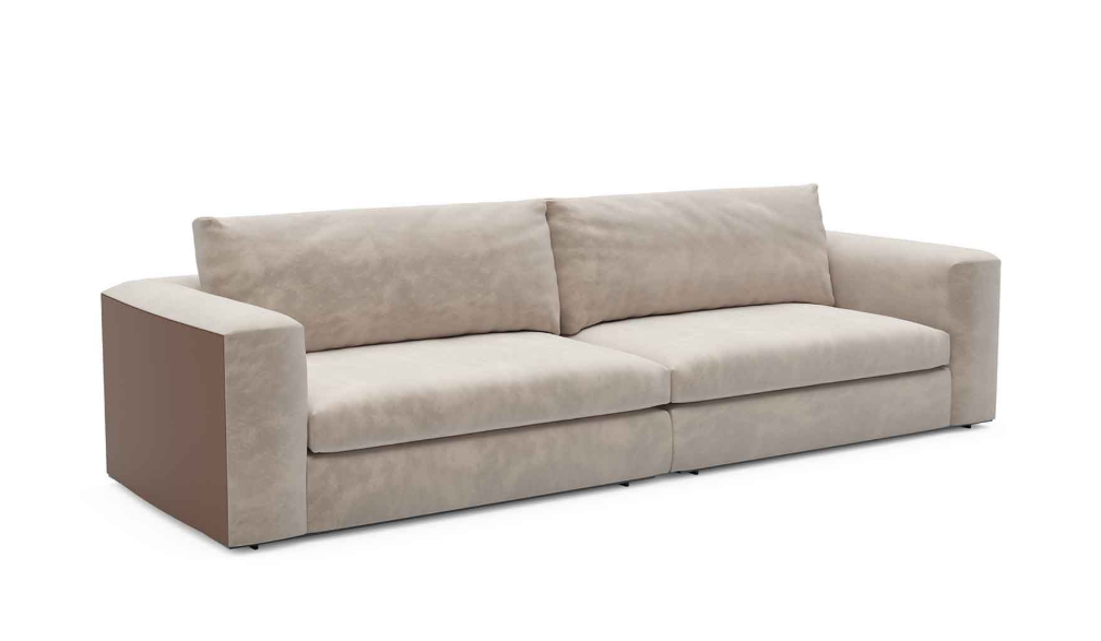 Sofa , frame made of solid timber and plywood. Polyurethane foam padding. Solid timber armrest, moka finish