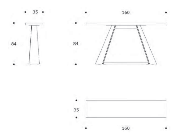 Dimensioni: larghezza 160 cm, altezza 84 cm, profondità 35 cm.