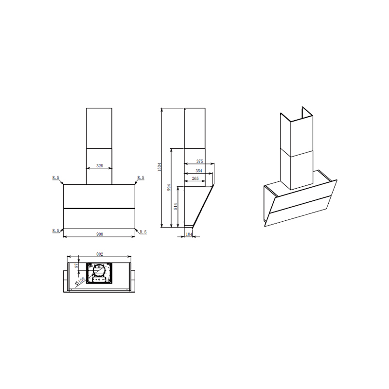 90 cm,中式抽油煙機(jī),壁掛式,拉絲鋼 / 白色玻璃