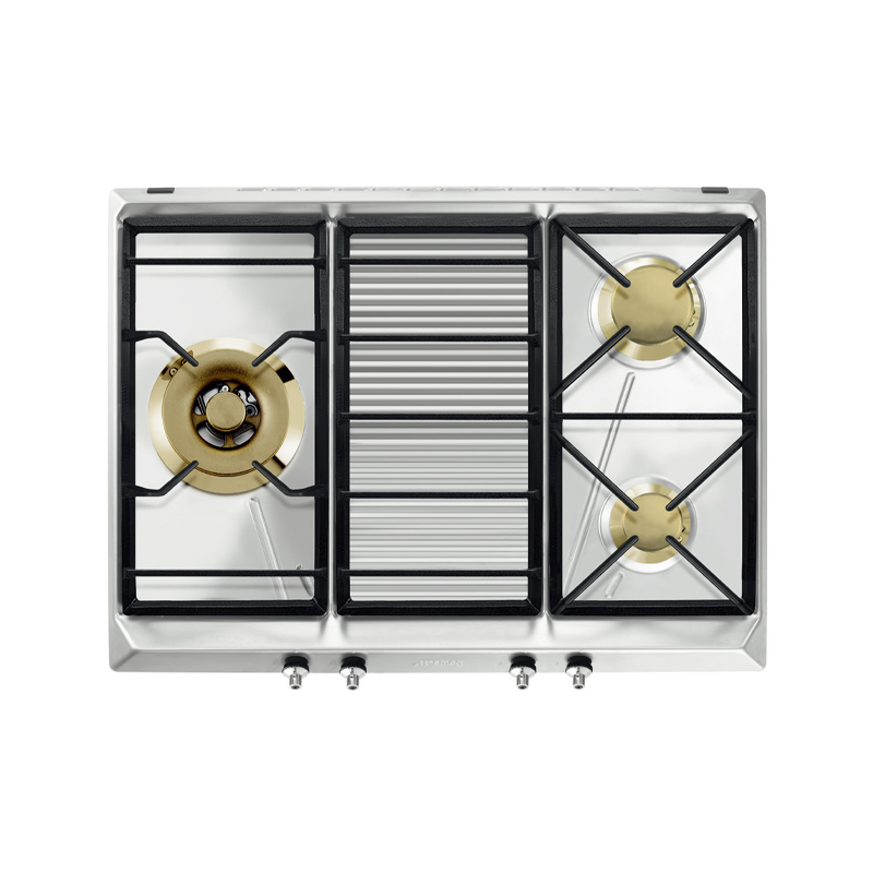 Classic/ 經(jīng)典系列,70cm 嵌入式 3 眼燃?xì)庠罹撸? 級(jí)能效,拉絲不銹鋼,鑄鐵鍋架,全銅爐頭組件