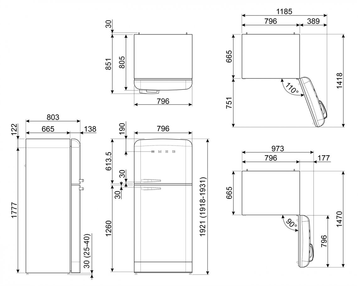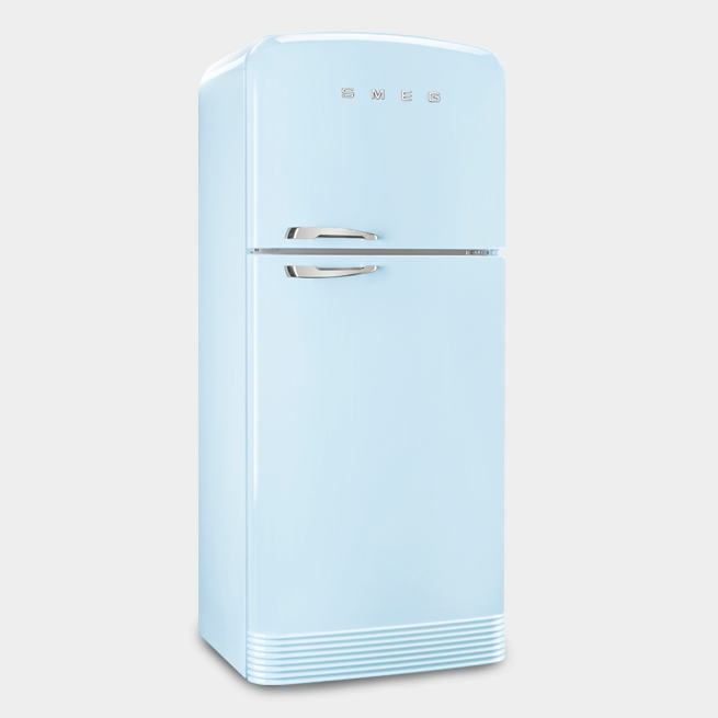 50 年代復古系列,獨立式上下開門冰箱,全無霜 - 雙制冷循環系統,右手開門,LED 顯示,鉻合金把手 / 古銅色把手,能效等級 A++