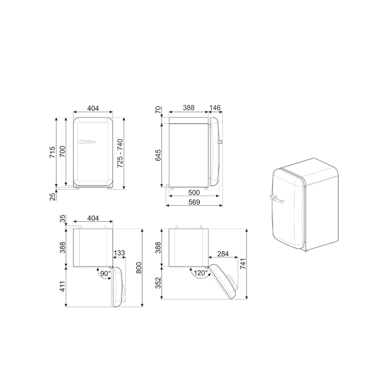 50 年代復古系列,單門冰箱,A+++ 級能效,右手開門