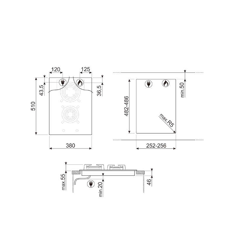 Dolce Stil Novo 系列,38cm 嵌入式雙眼燃氣灶,黑色耐高溫微晶玻璃,鑄鐵鍋架,銅質裝飾條