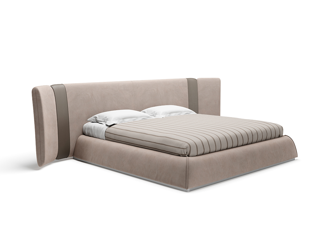 床頭板:天鵝絨覆蓋,系上皮帶。鈦金屬圓邊