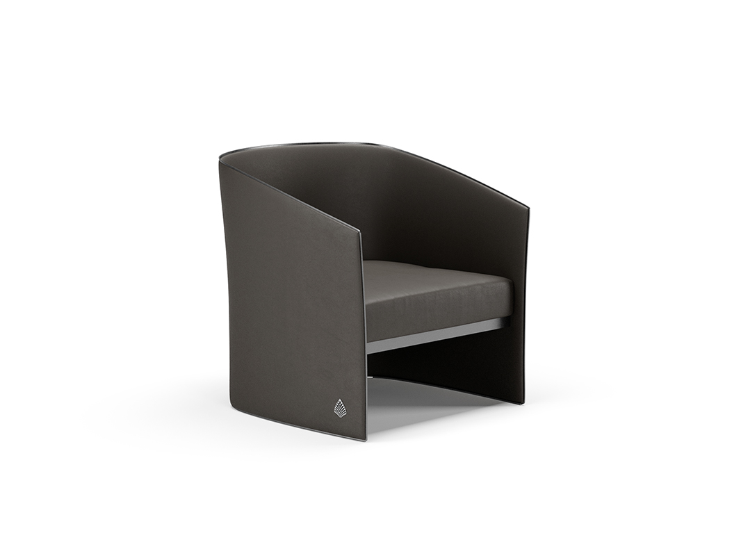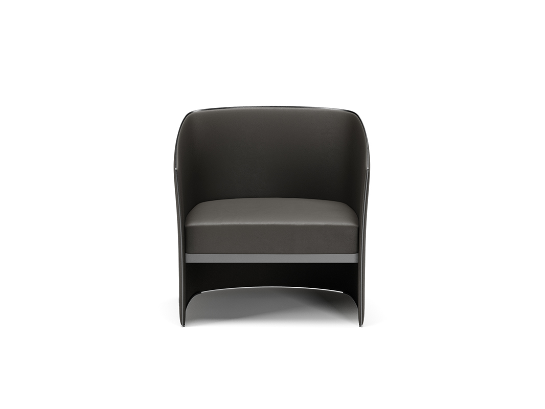 POLTRONA CON GUSCIO IN PELLE, INTERNO INTESSUTO,TELAIO IN METALLO VERNICIATO E PIEDINO TITANIO