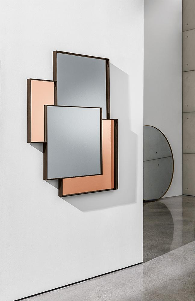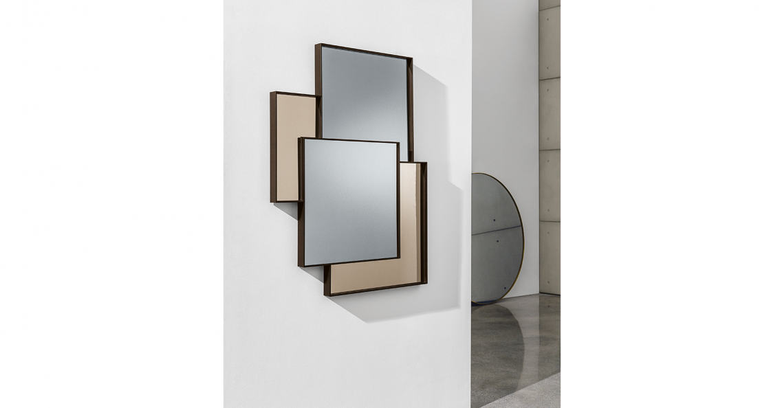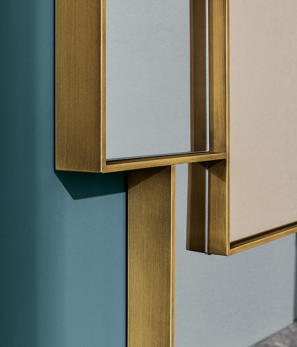 Combi astrae gli spazi come in un dipinto grazie alle molteplici riflessioni ed alle diverse tonalità di specchio. La struttura in alluminio divide ma allo stesso tempo accompagna in modo armonioso le varie parti come in un mosaico, dove la riflessione è il tassello che da significato allo spazio.