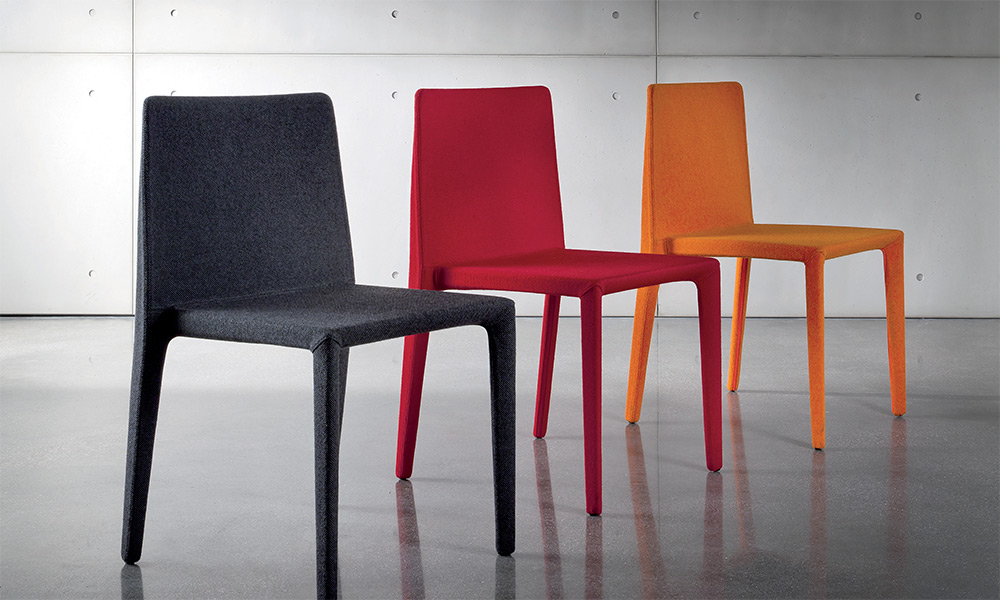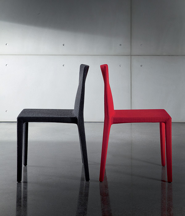Sedia con struttura in poliuretano stampato, rivestita in tessuto Kvadrat, pelle, ecopelle o ecopelle nabuk (Rebel).