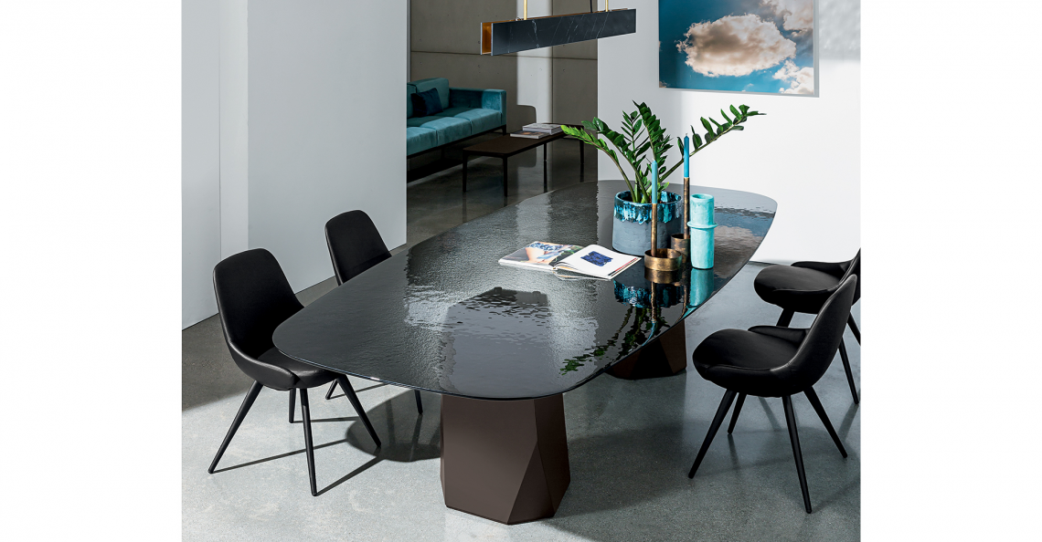 Tavolo con basi in metallo verniciato, disponibile in varie finiture. Top temperato o stratificato in varie misure, materiali e finiture.