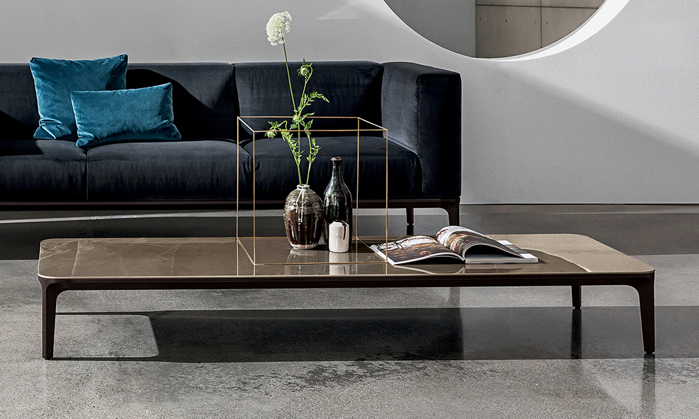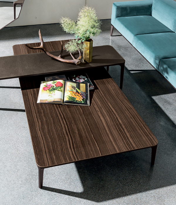 Tavolino con gambe e struttura in alluminio, varie finiture. Top disponibile in varie misure, forme, materiali e finiture.