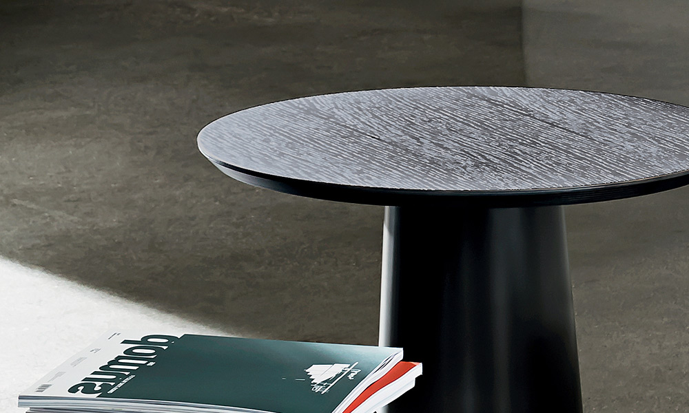 Tavolino con base in metallo laccato, varie finiture. Top temperato o stratificato in varie misure, materiali e finiture.