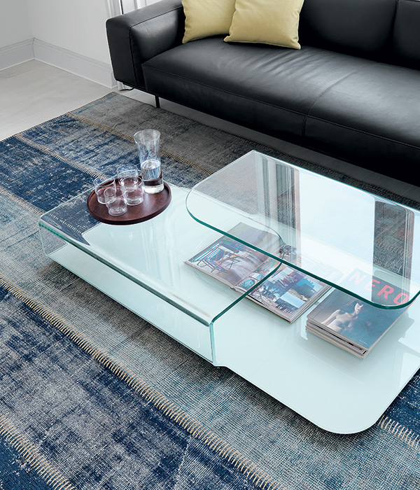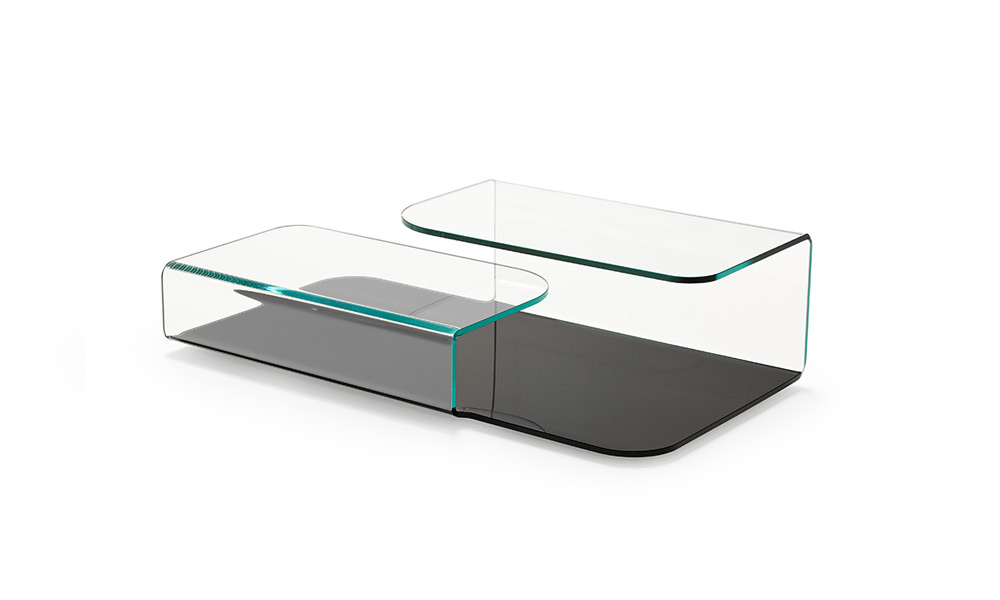 Un tavolino composto da forme semplici che si inseguono in un loop fluido, ripiegandosi armoniosamente su sé stesse. La sovrapposizione delle superfici offre diversi livelli d'appoggio ed un effetto ottico di forma infinita.