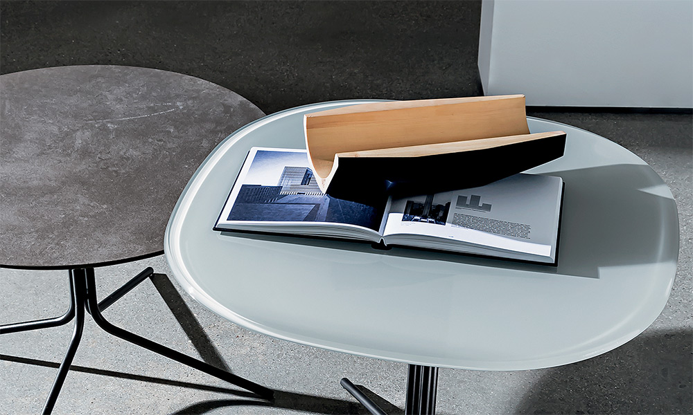 Tavolino con base in metallo, varie finiture. Top temperato o stratificato in varie misure, materiali e finiture.