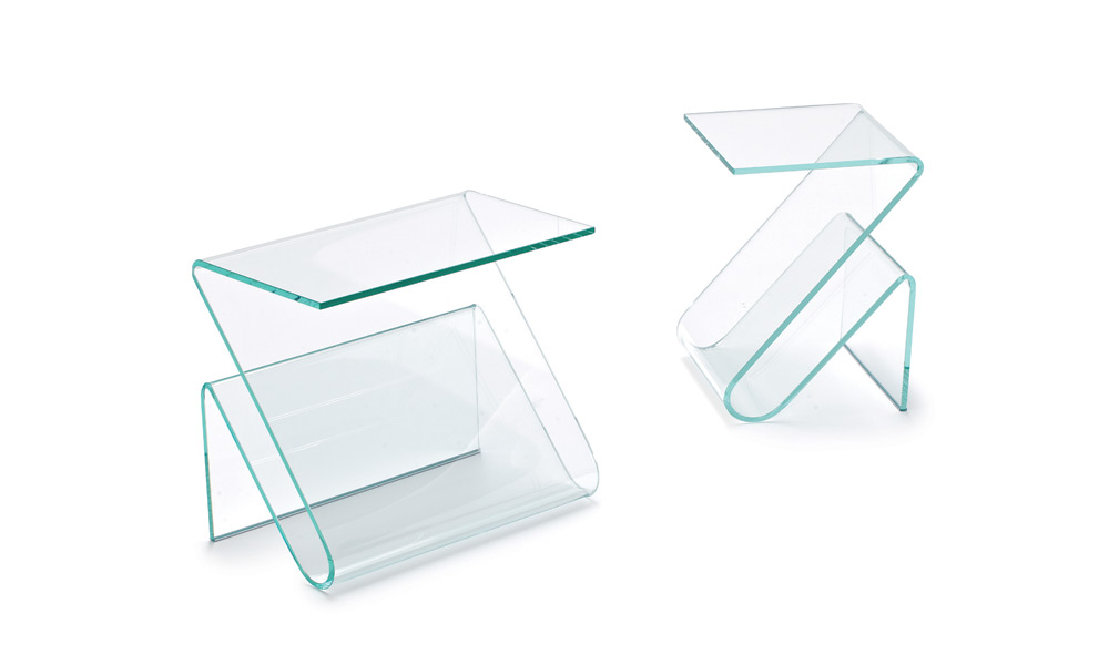 Portariviste in vetro curvo trasparente extrachiaro o fumé.Portariviste in vetro curvo trasparente extrachiaro o fumé.
