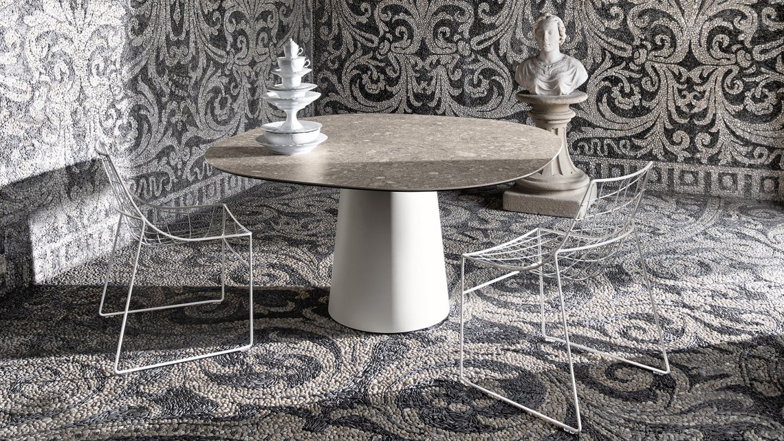 La ricchezza di personalità e la possibilità di realizzazione su misura della collezione Totem trova ampia espressione nella sua versione outdoor impiegata in esterni residenziali, lounge e restaurant bar. La versione tavolino in due altezze completa la zona per rilassarsi nello spazio outdoor.