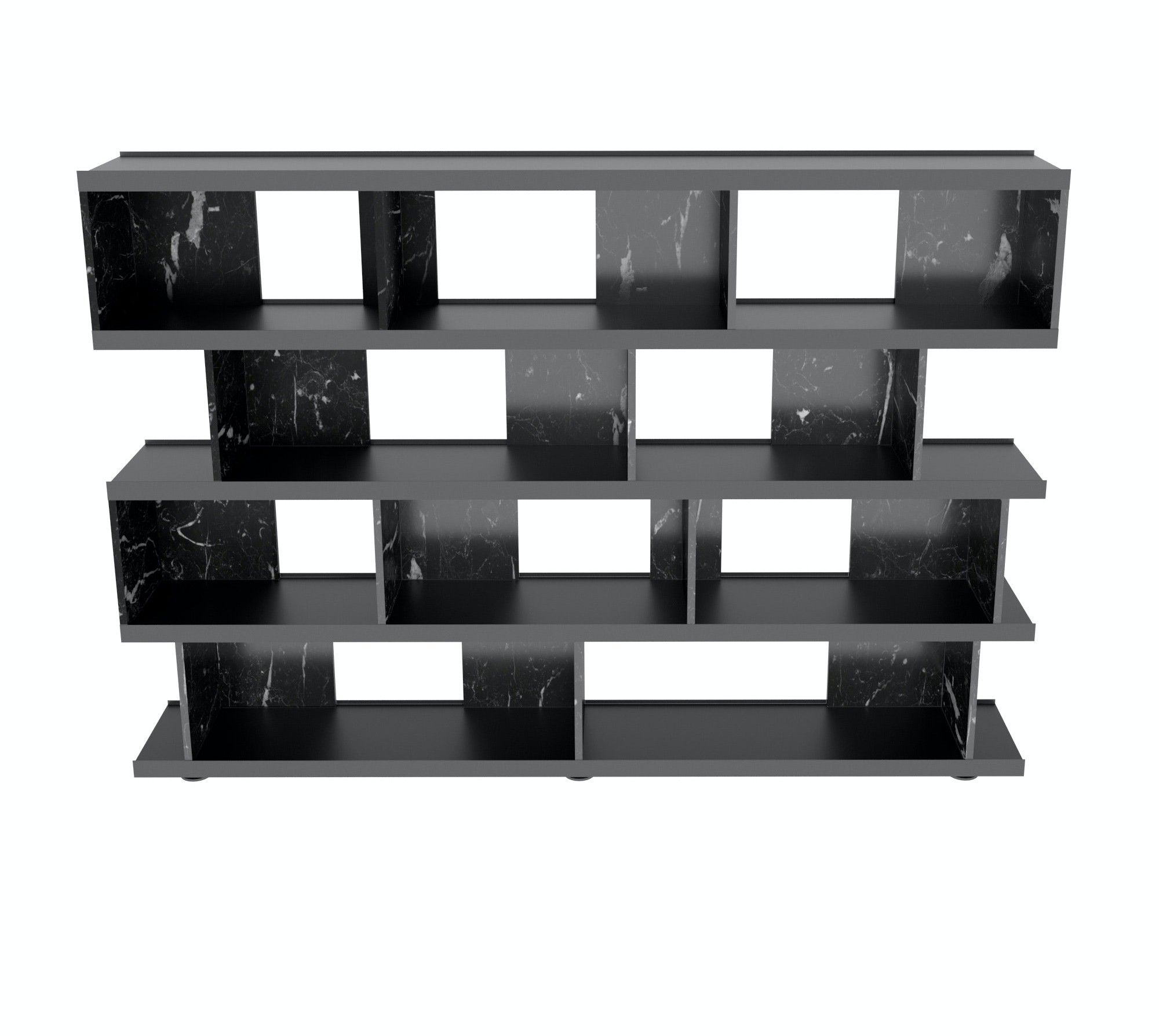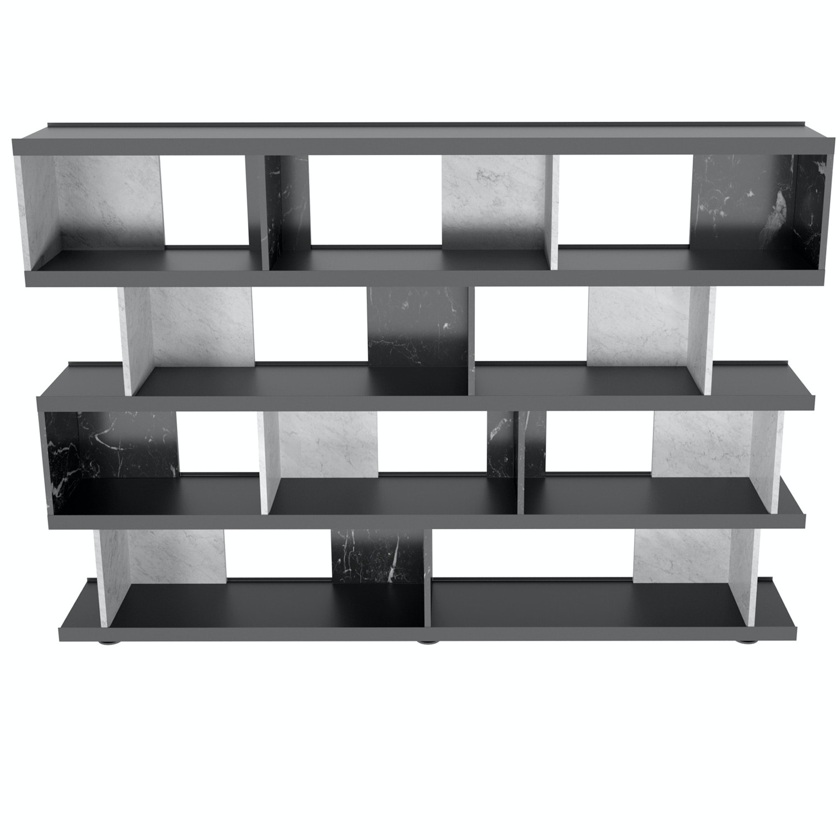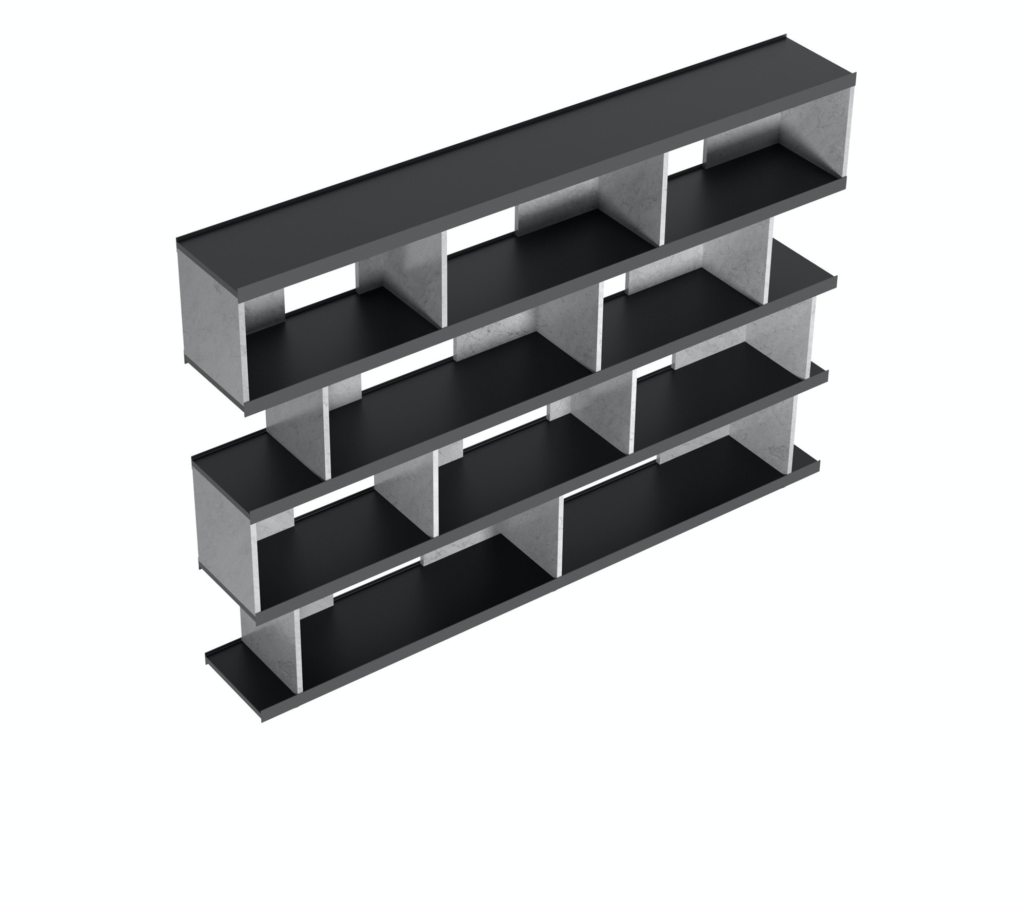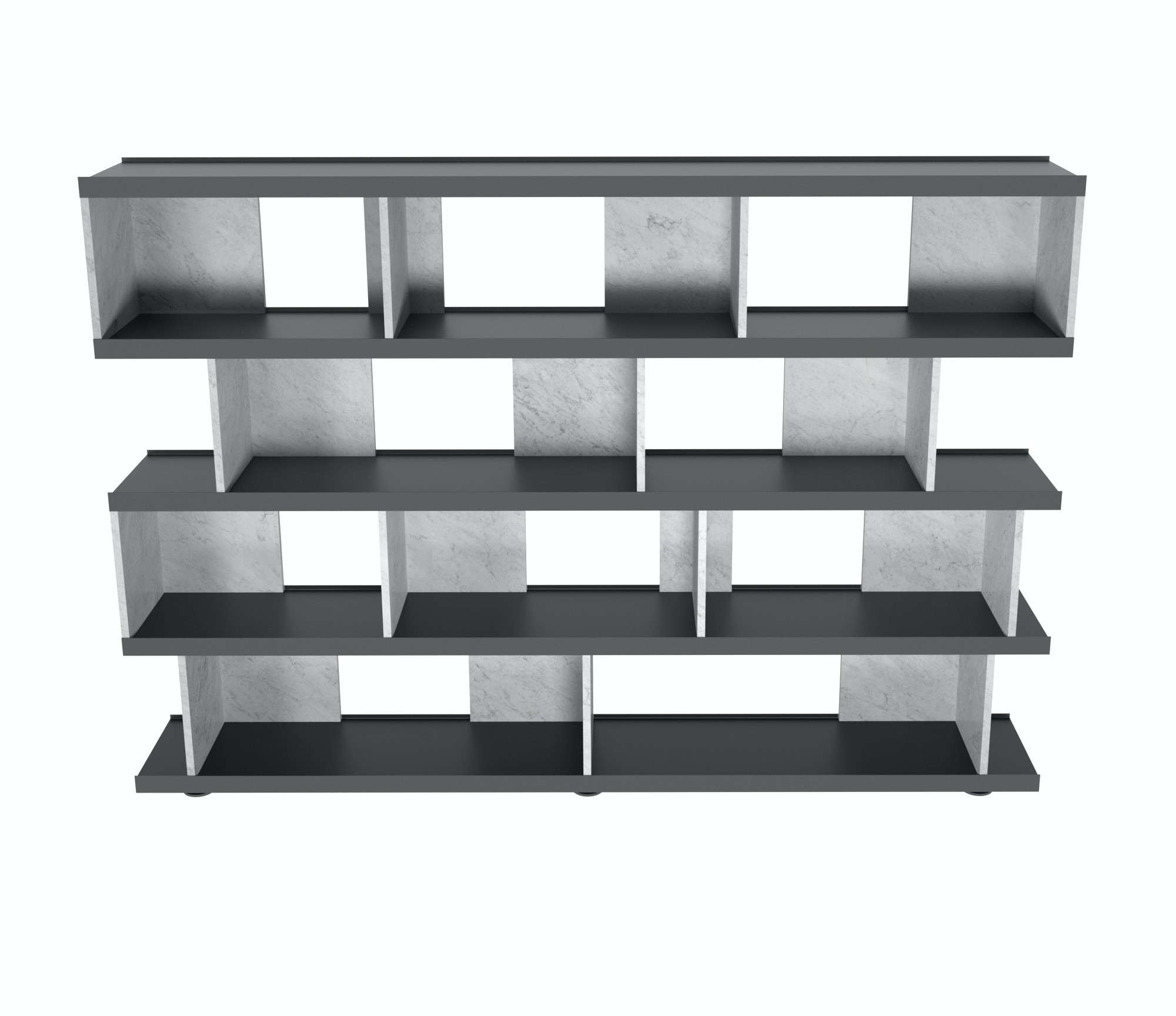 The freestanding bookcase is a piece of statement furniture which can be positioned in the centre of a room, with its L-shaped dividers able to be installed two directions, creating display spaces behind and in front.