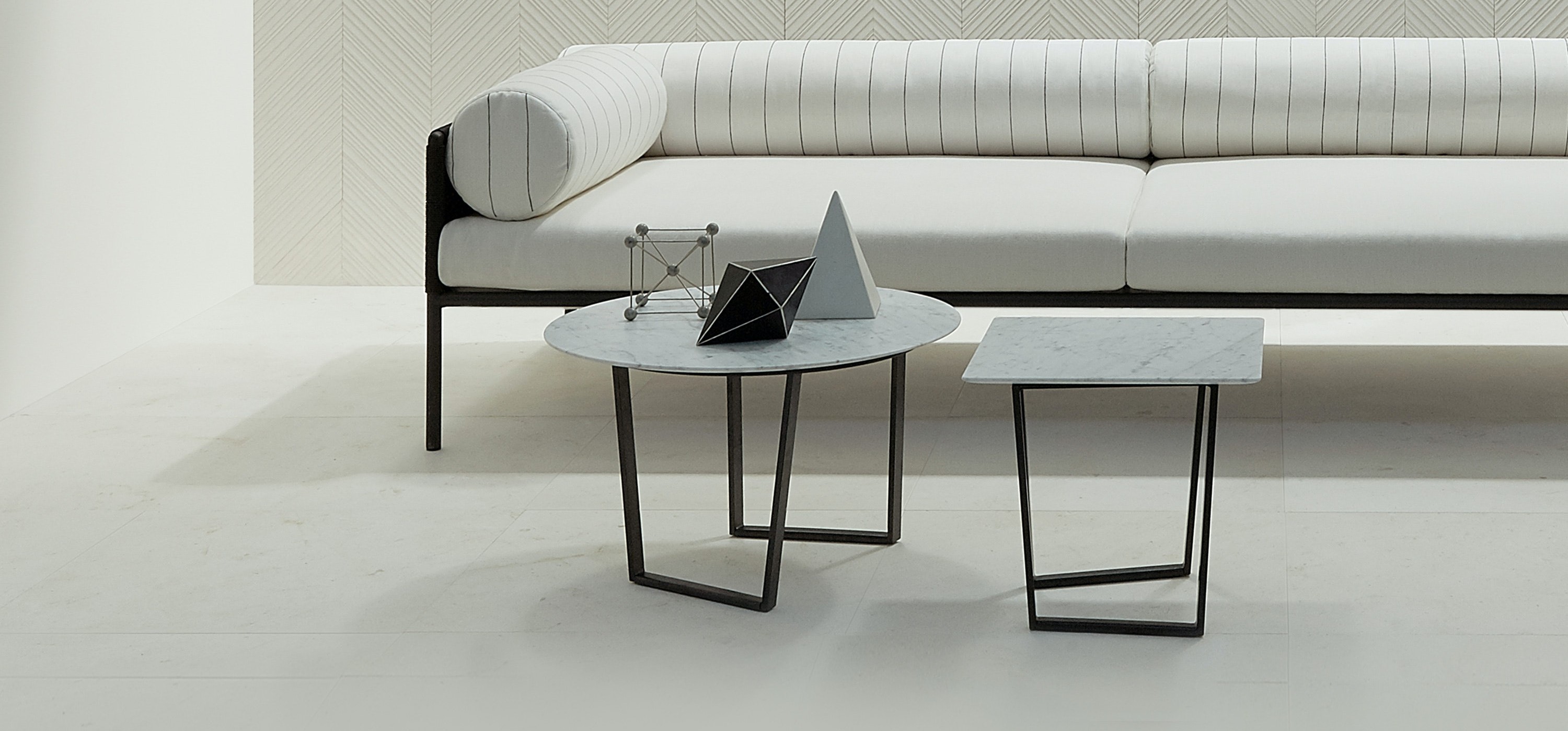 Designed by Piero Lissoni exclusively for Salvatori, Dritto combines elegant lines of classic natural stone with a bold geometric frame crafted from iron.