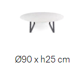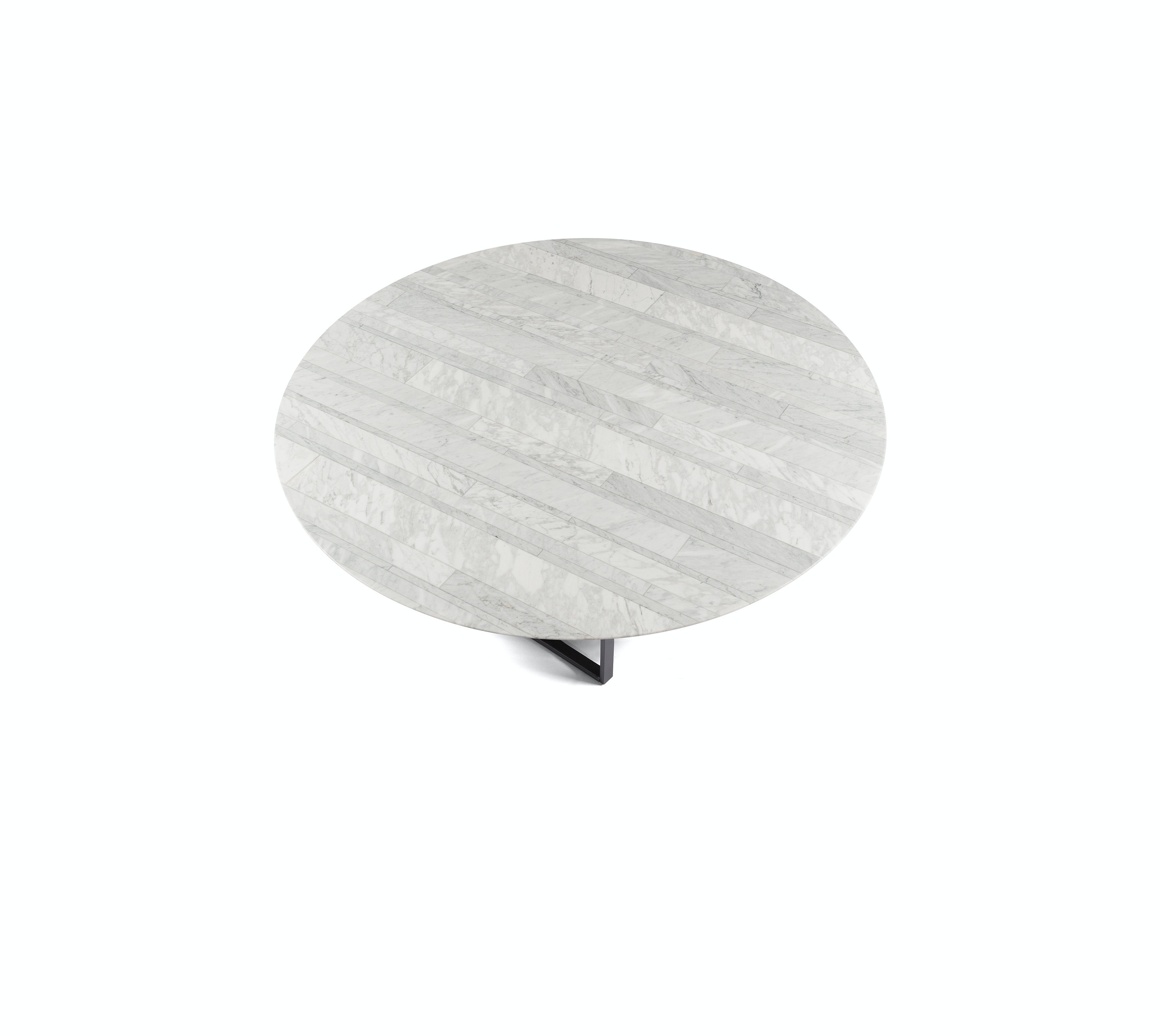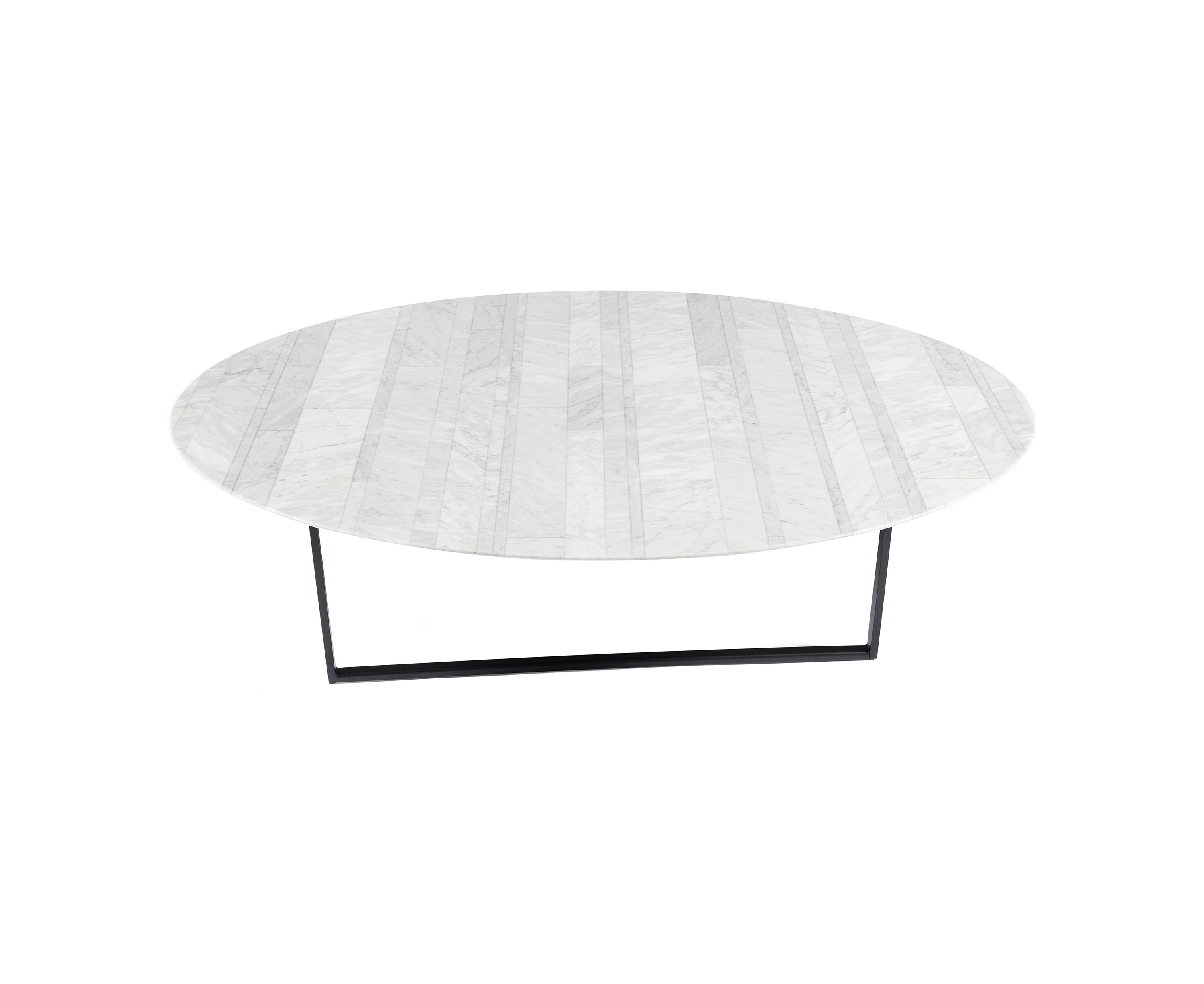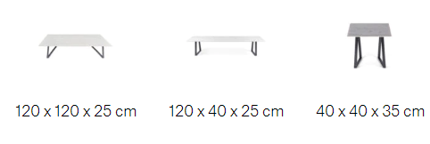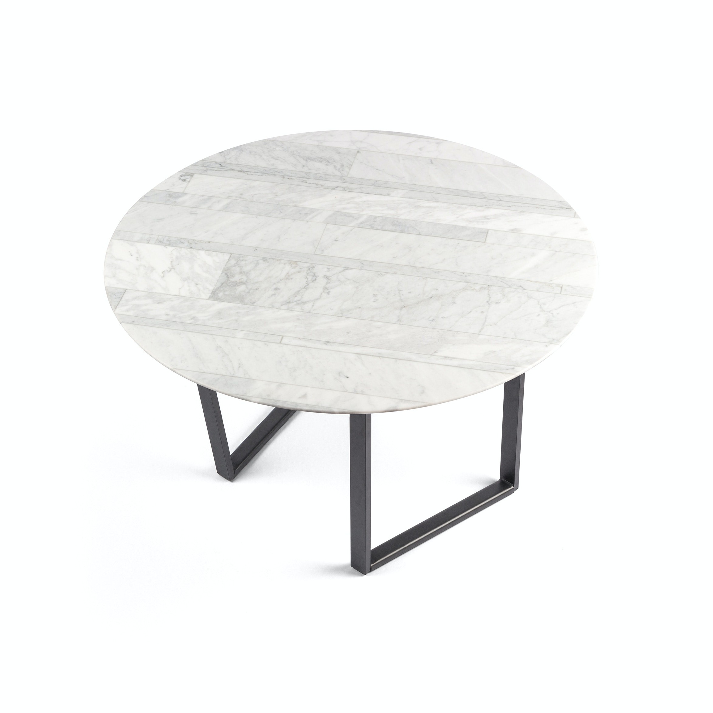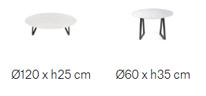 Designed in round and square versions of varying dimensions, the table tops were created to contrast with the sturdy iron frame, which is composed of slightly askew legs.