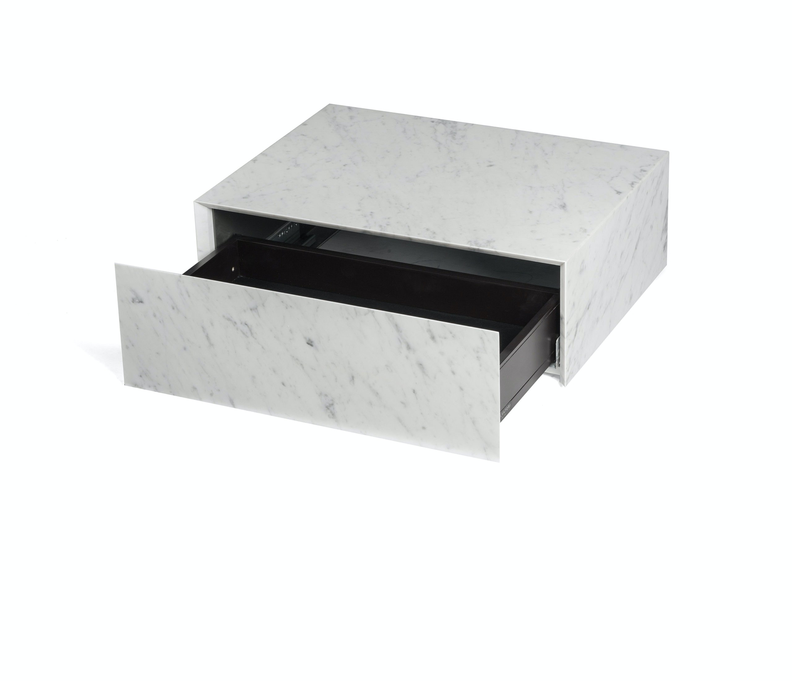 Part of the Fontane Bianche series, the Ciane drawers and floating shelves were created as a homage to a modern-day legend, the groundbreaking conceptual artist Donald Judd.