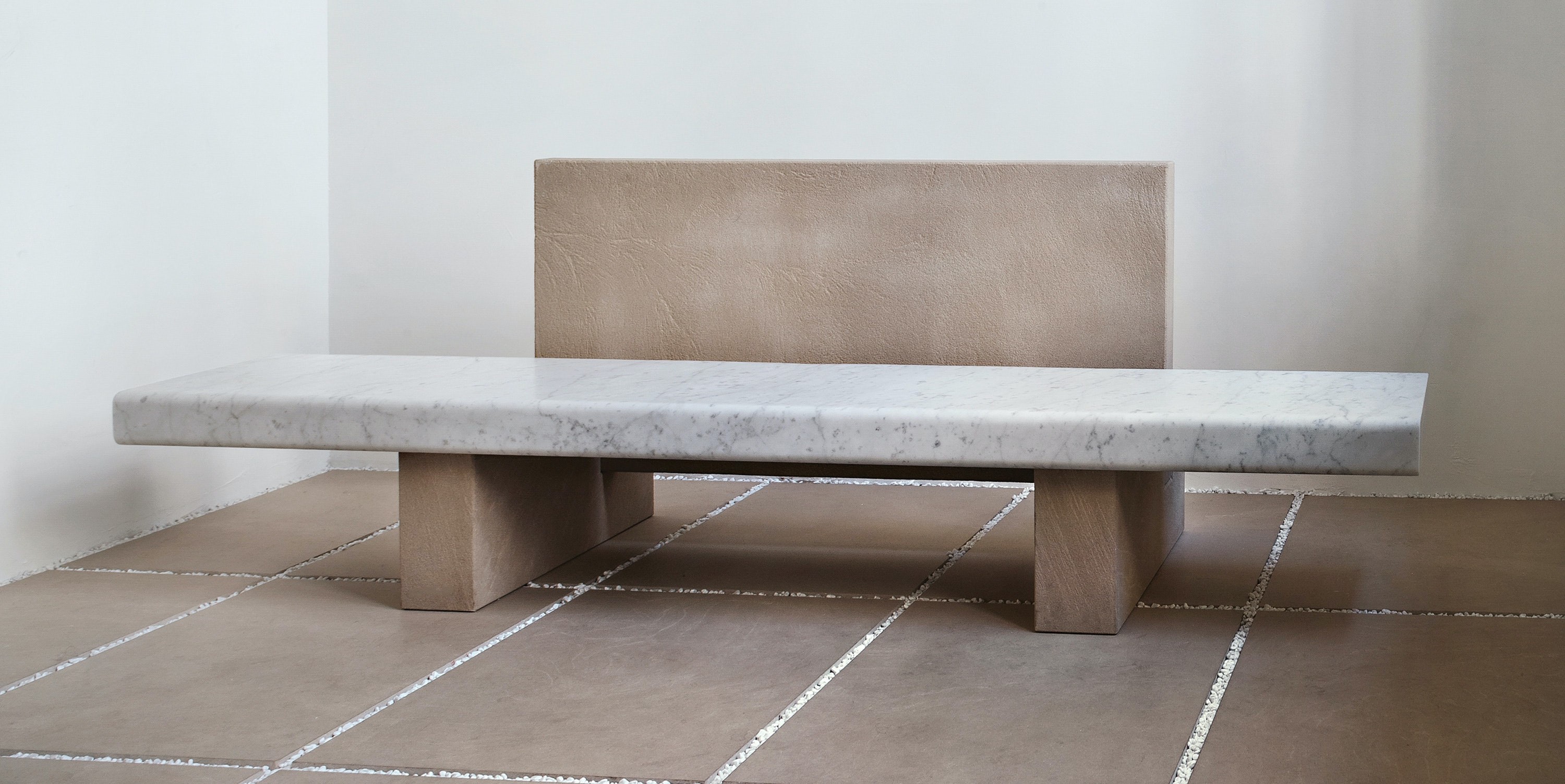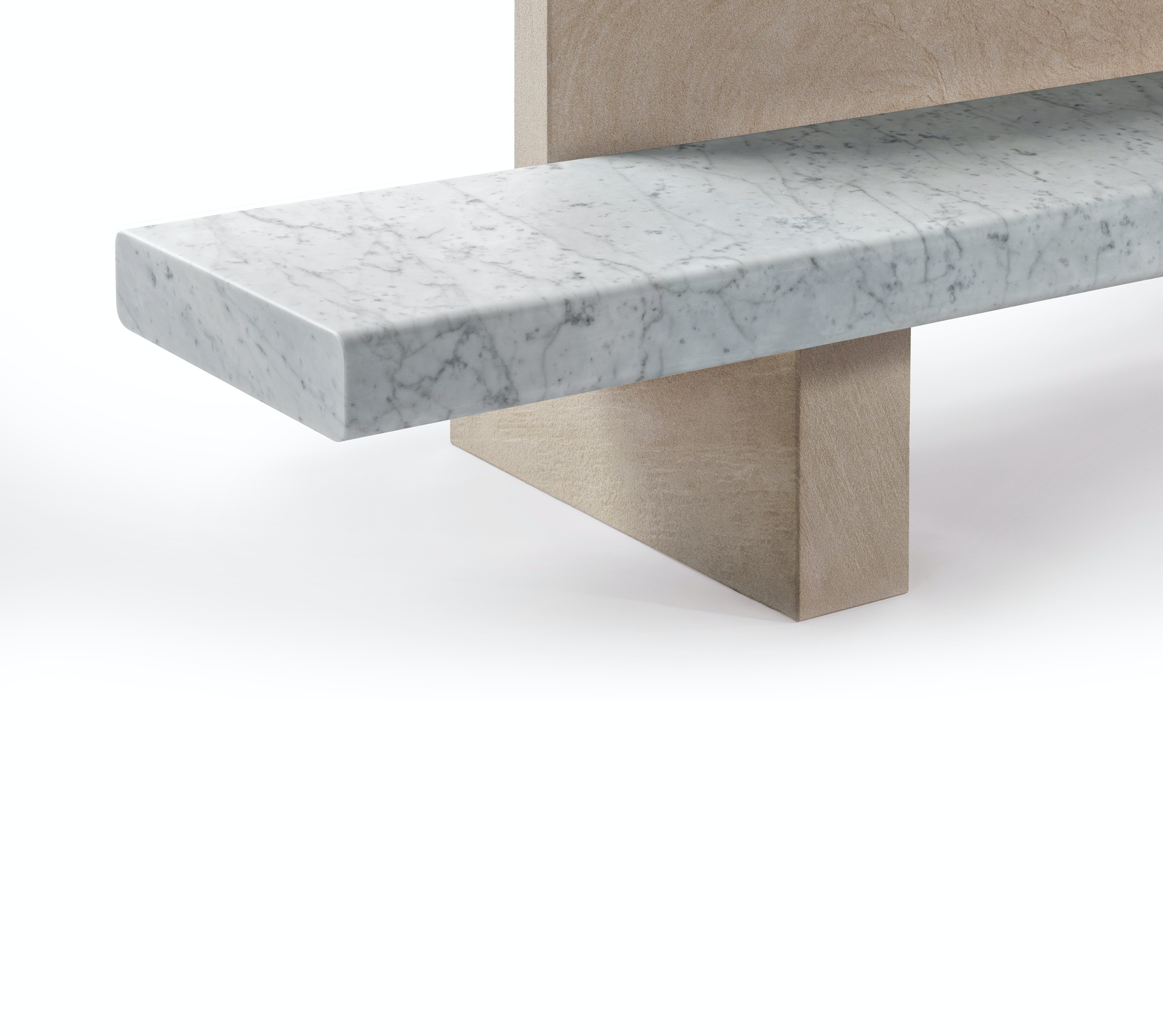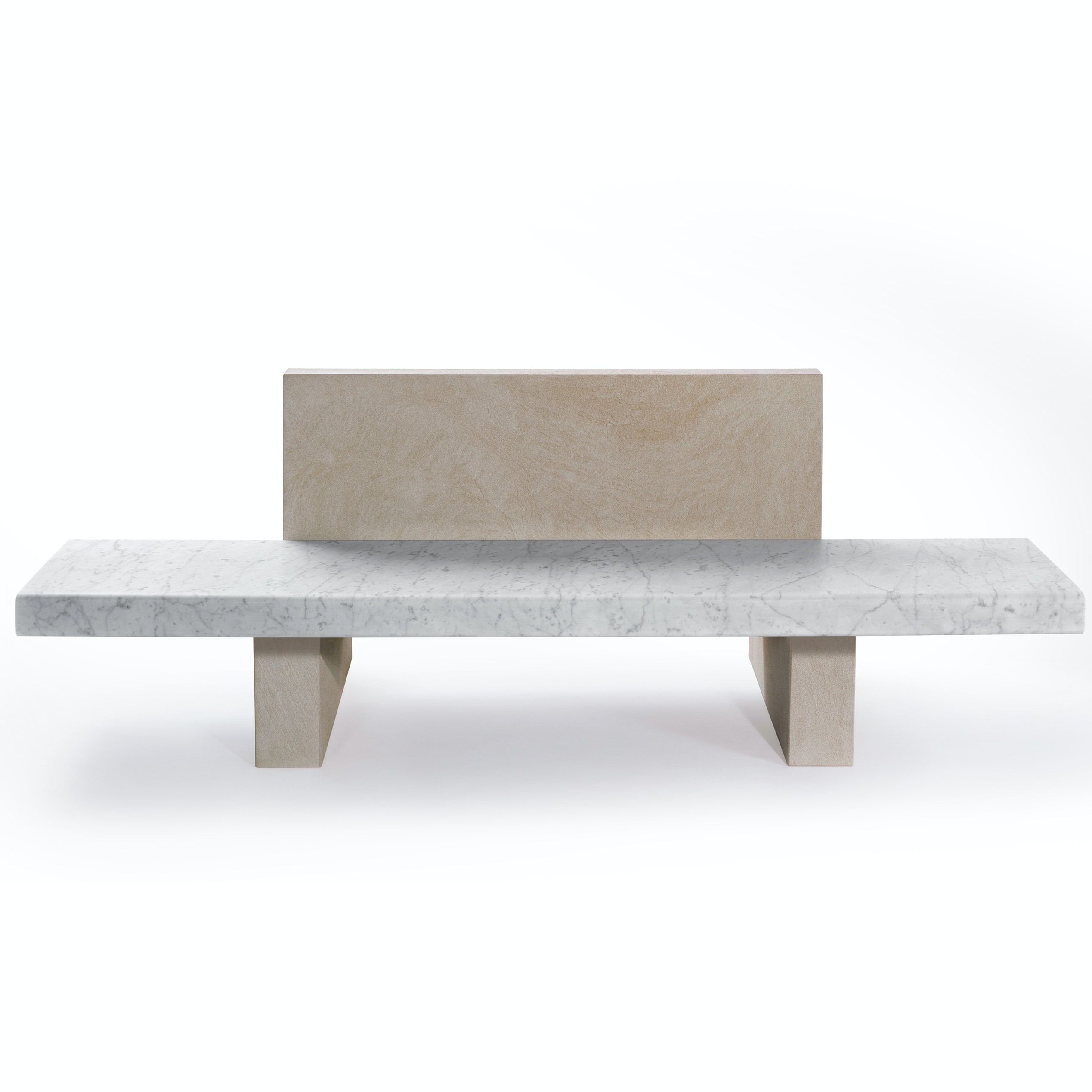 This bench plays with the classic form of a park bench: a single seat flanked by a perpendicular backrest. Pairing classic Bianco Carrara marble with the golden hues of Avana sandstone, ‘Span’ is the first collection in the Salvatori home accessory range designed specifically for outdoor use.