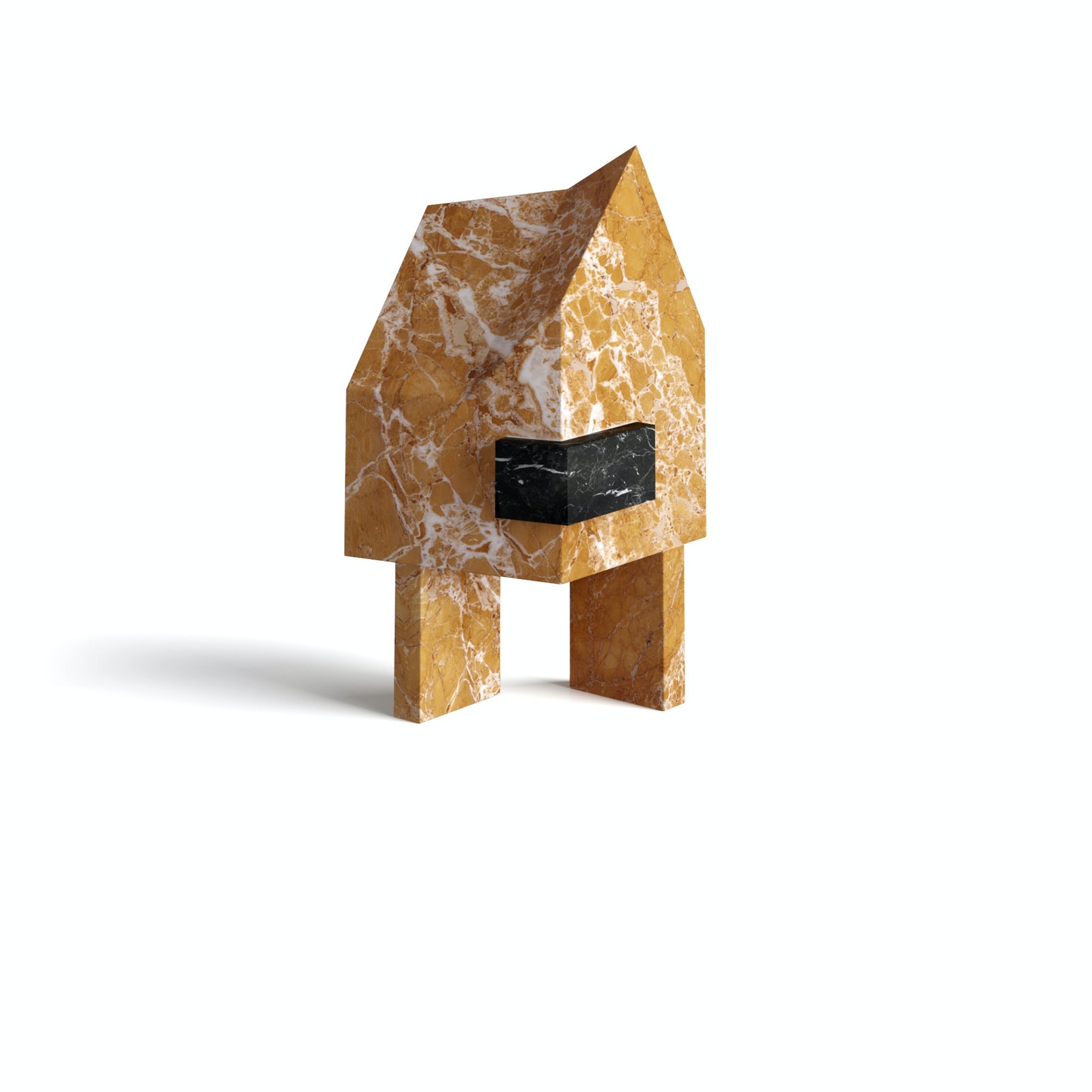 A series of architectural sculptures in natural stone, playing with the notion of the archetypical house, make up a fantasy neighbourhood, with each piece their own tiny contained world to be explored, lived in and experienced.
