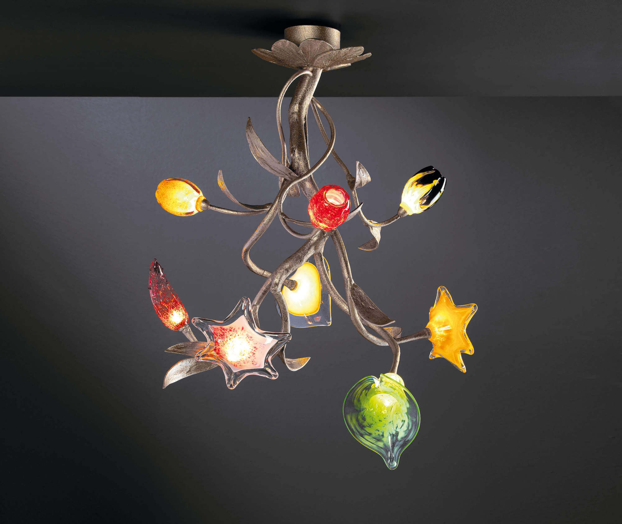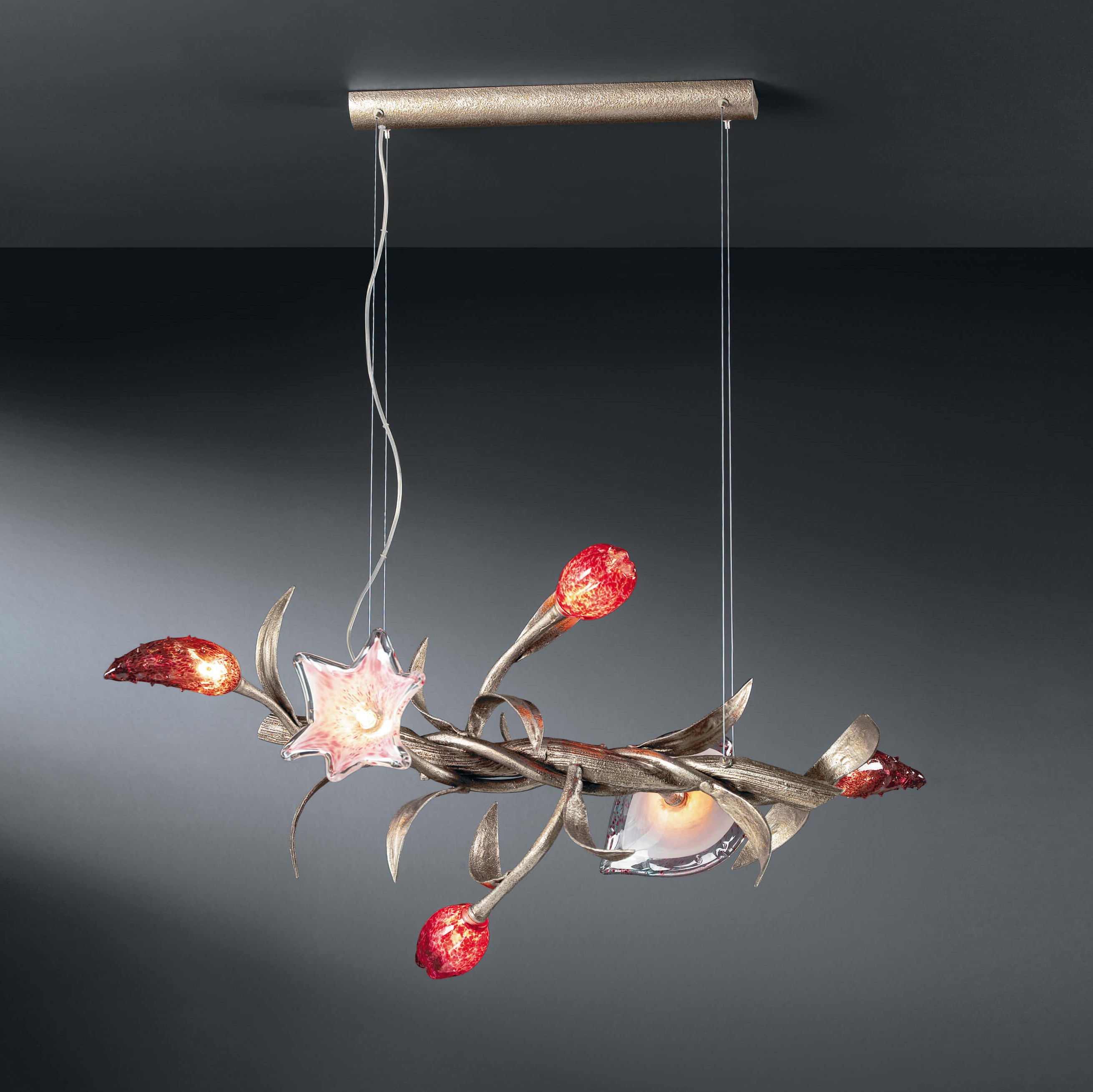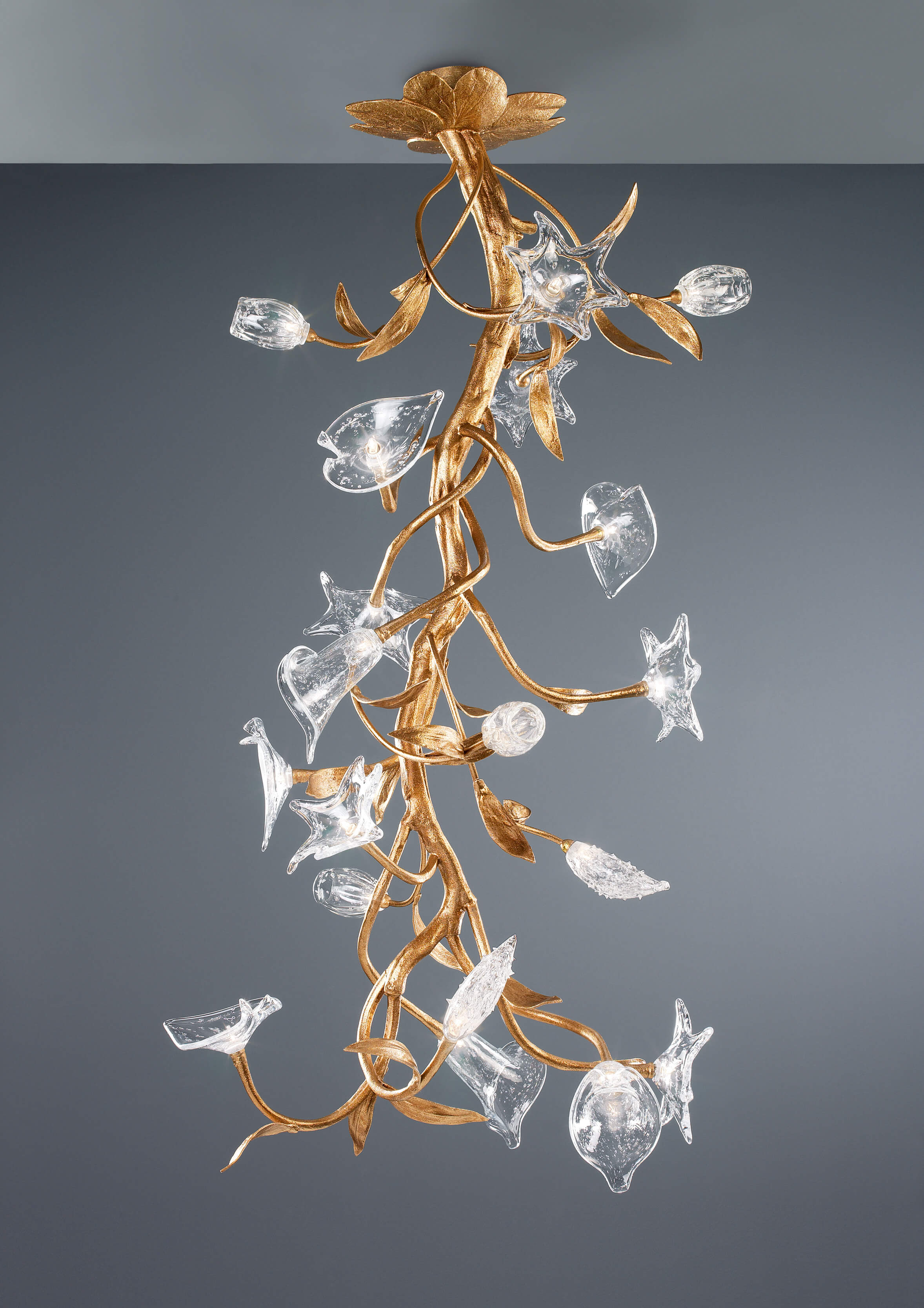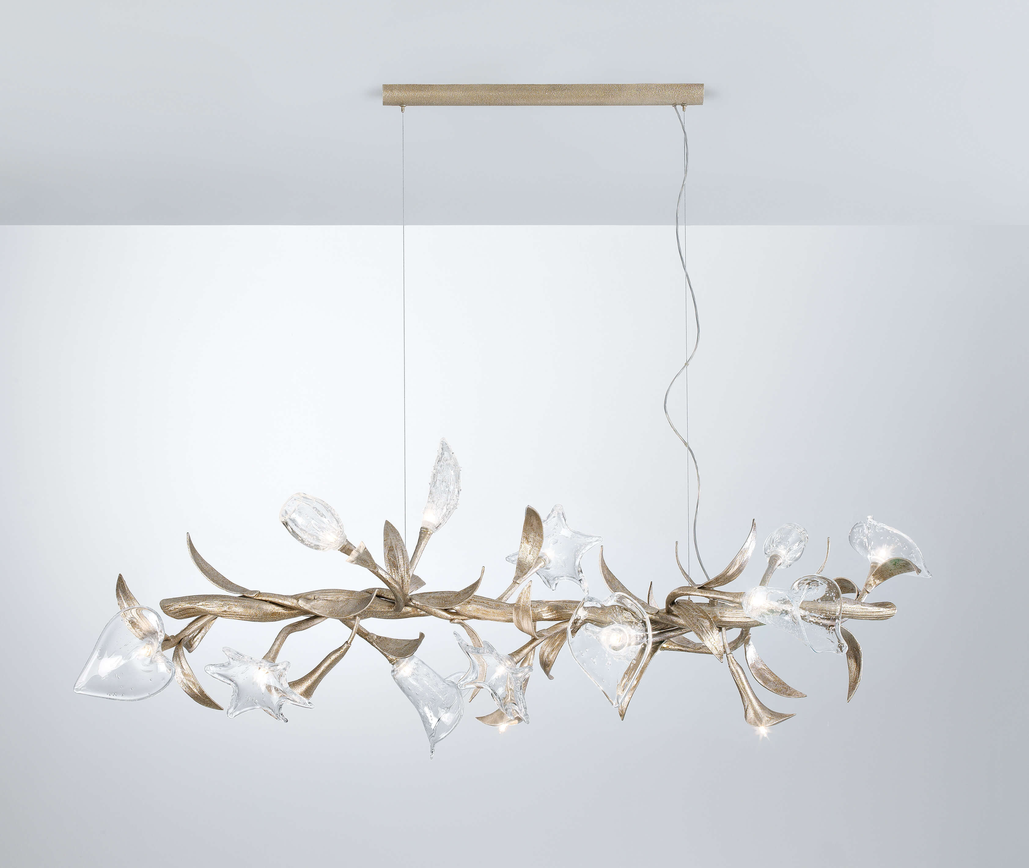 The spiral motion of the chandeliers transports us to an idea of a living garden.