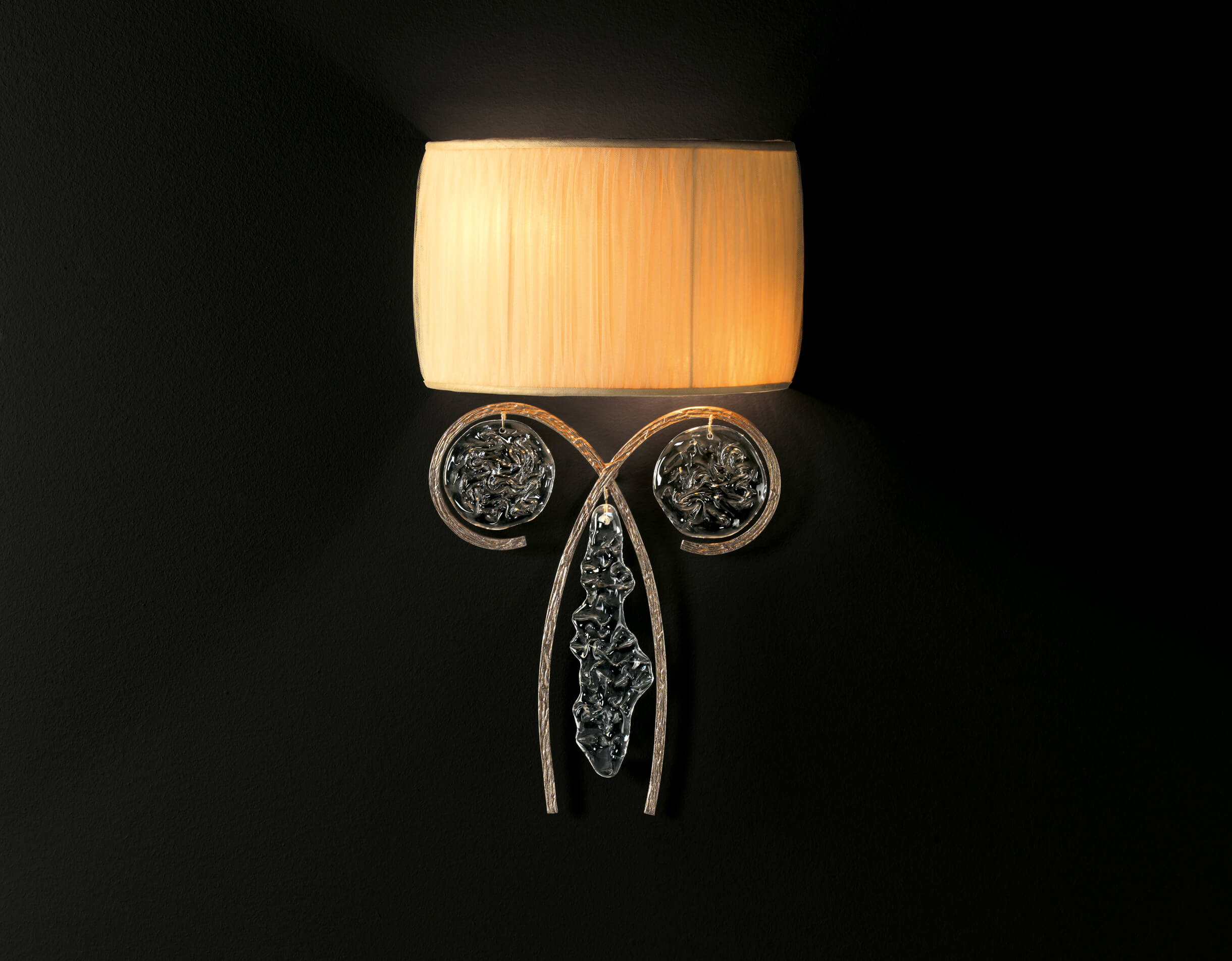 Materials: Bronze, Glass and Organza Lampshades