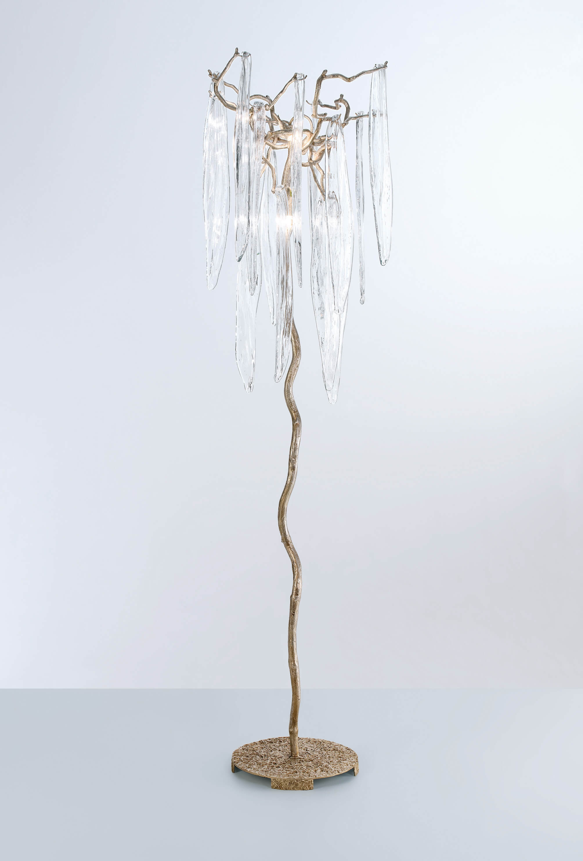 Featuring intrinsic solid verticality, the Waterfall collection plays with the duality of visually dense crystal pieces and the minimalism of the bronze structure. Impending water fractions suspended and immobilized, the glass of the Waterfall exist in an extended diversity of chromatic options, a characteristic that combined with the different bronze finishes, meets the need to combine with decoration elements of various shades in a grandiose visual presence.