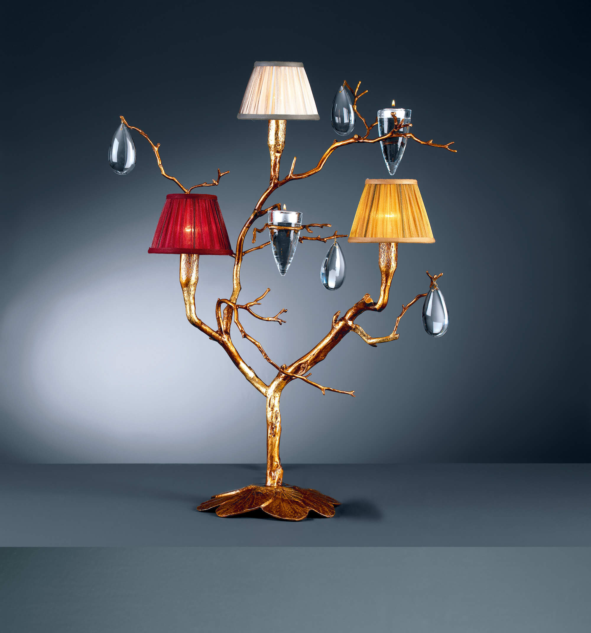 Material: Bronze, Crystal and Organza lampshades