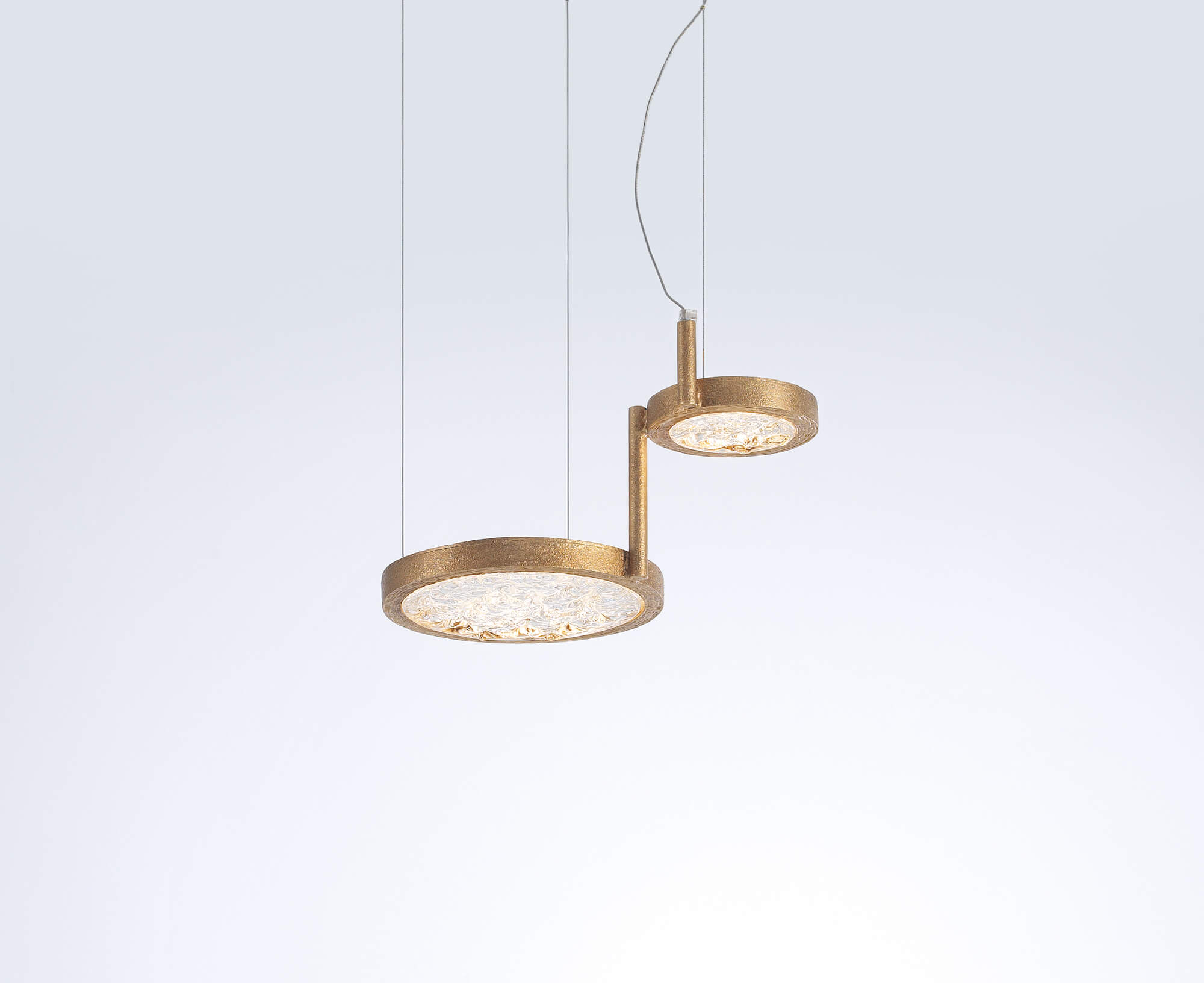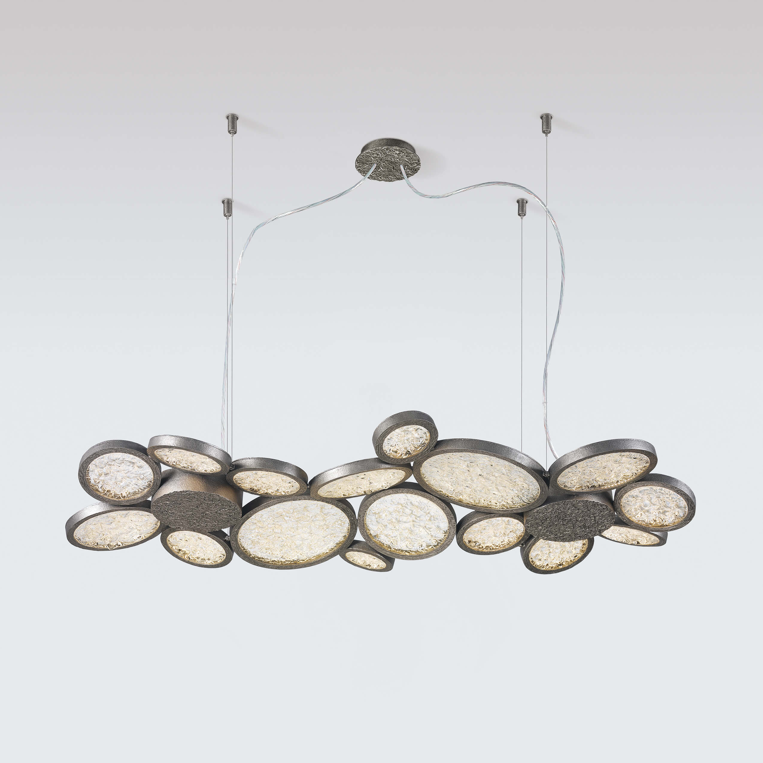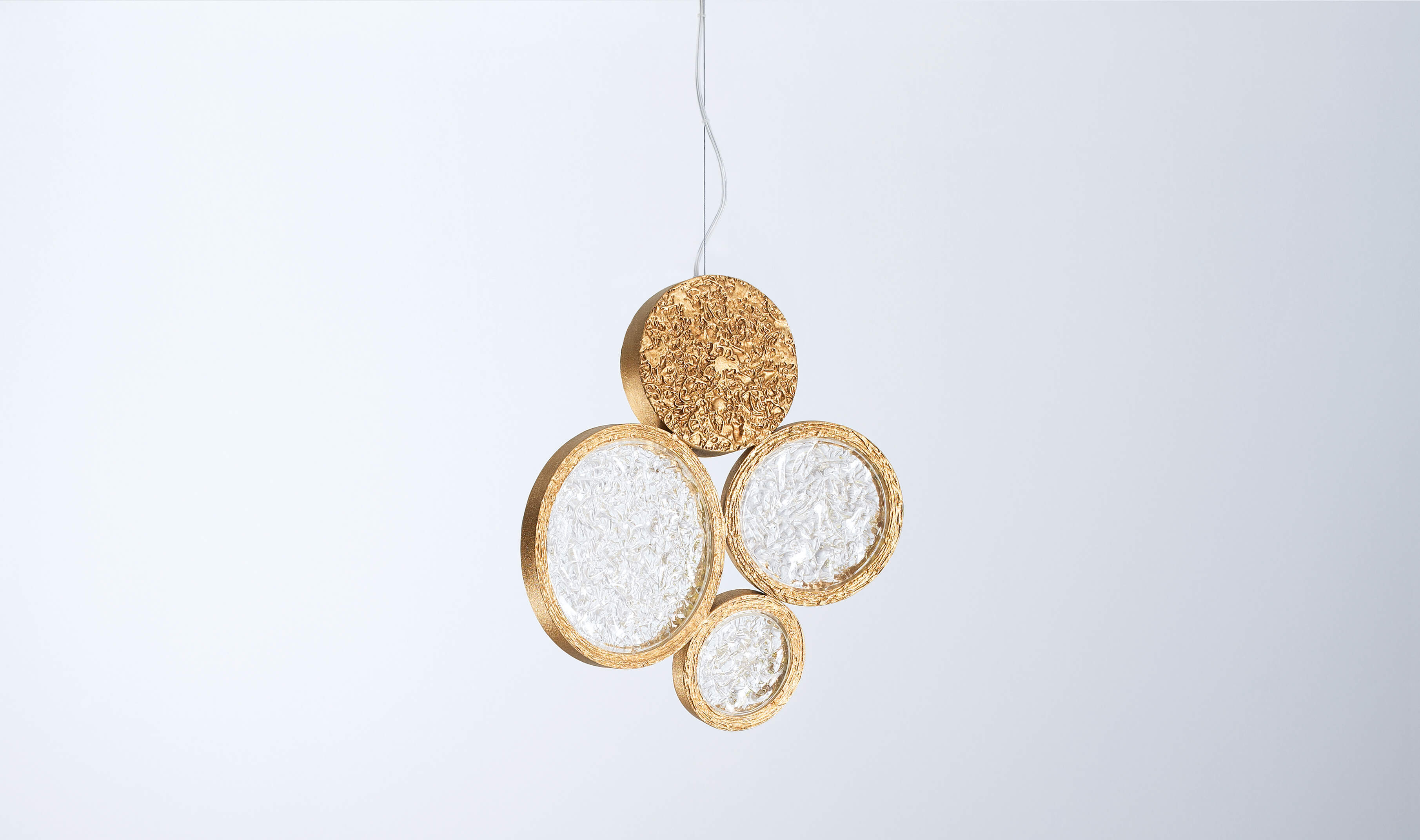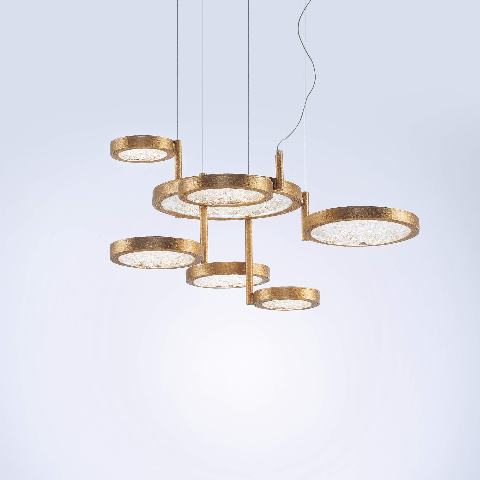 By the full moon contrasting light arises the Luna Collection, modern compositions with multiple rings of diffuse lighting. Designed under a mystical criteria of patterns, the circular pieces assume a position of high contrast and revolving texture, details that incorporate them as distinctive and eccentric, a bold choice in an interior design concept.