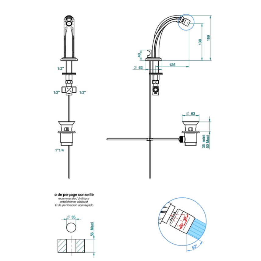 Recommandé : 3 bars (max. 5 bars) - Advised : 43,5 psi (max. 72 psi)