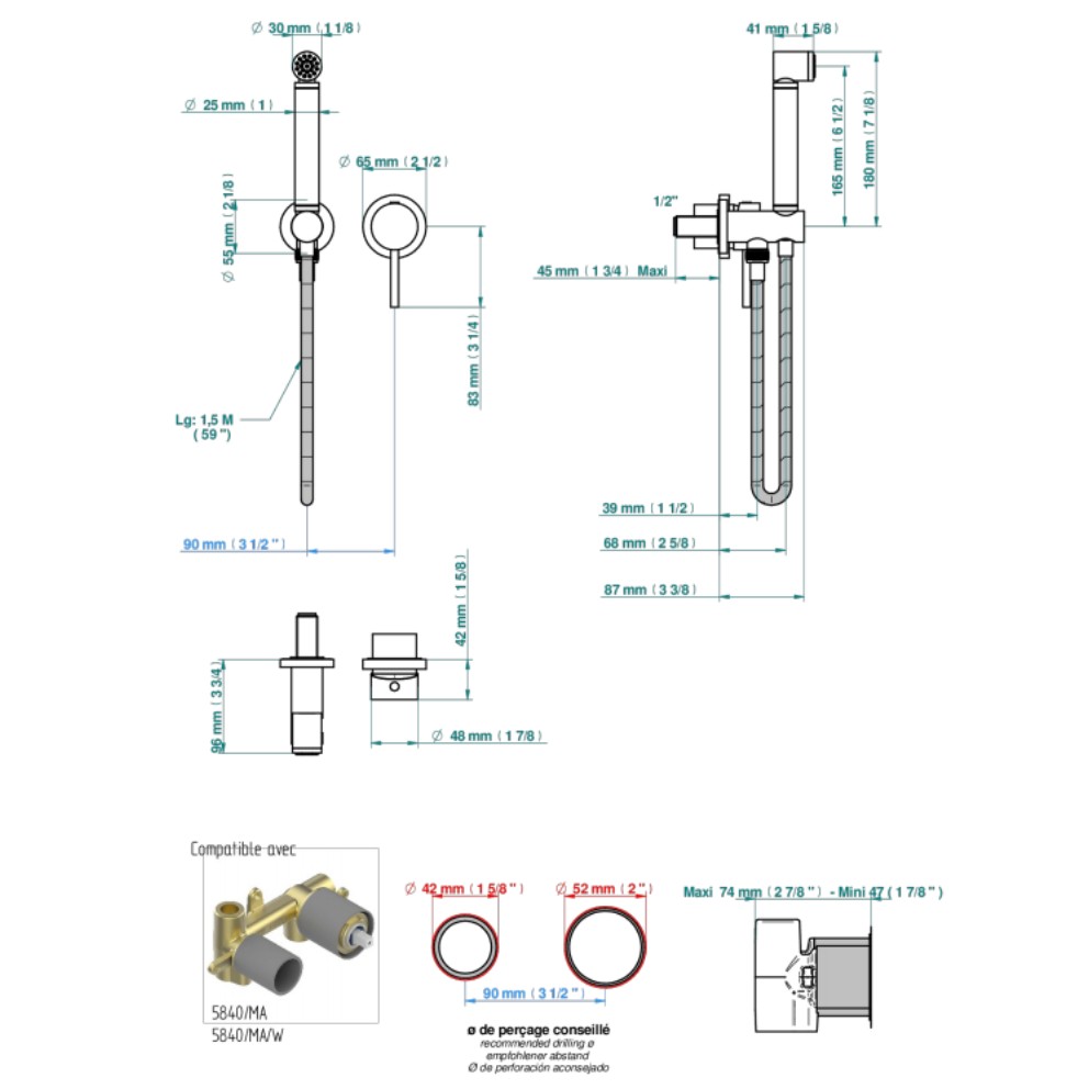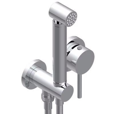 Trim only for WC douche including:spray without trigger, wall mounted single lever mixer, reinforced hose (1.25m), wall outlet with integrated elbow with safety stopper