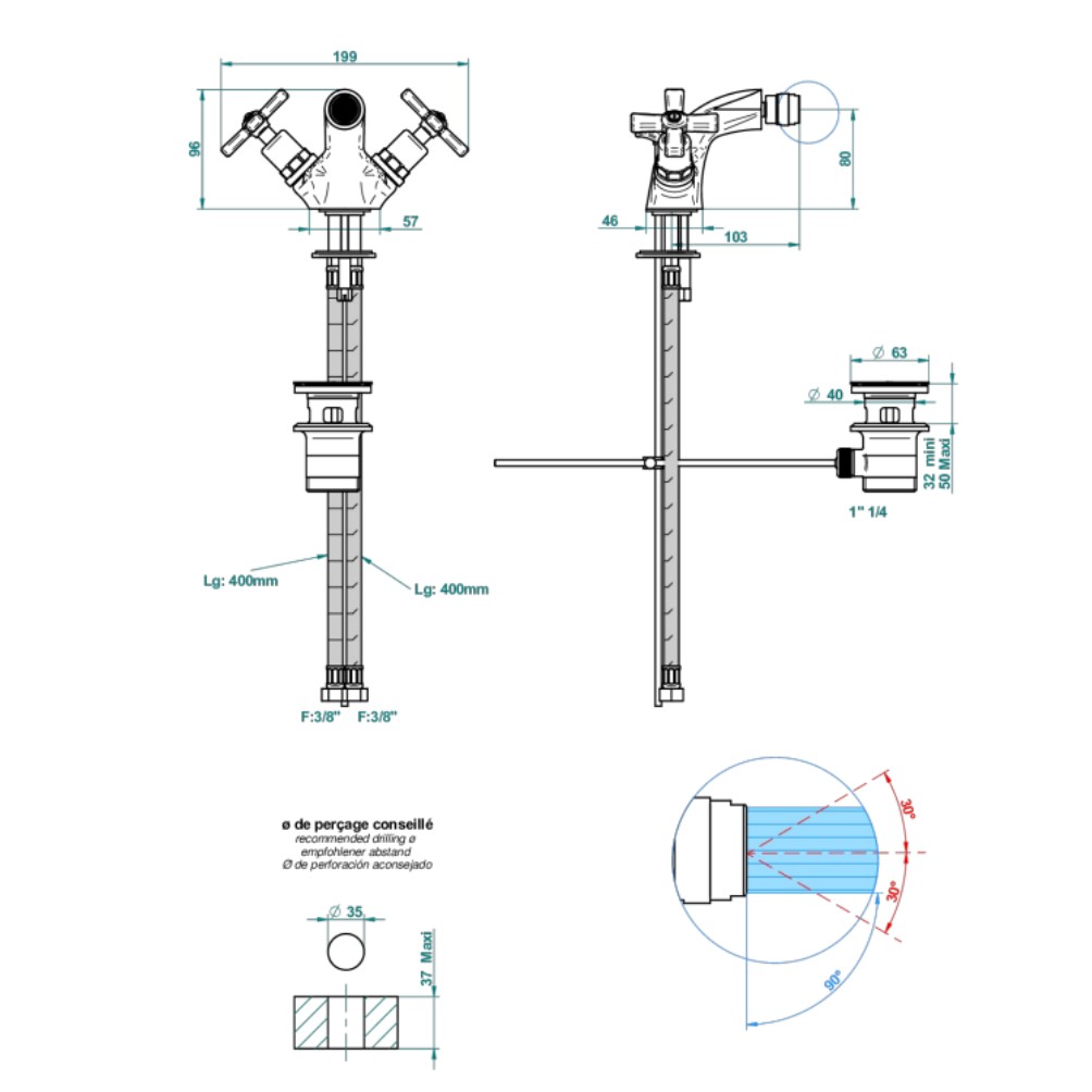 Recommandé : 3 bars (max. 5 bars) - Advised : 43,5 psi (max. 72 psi)