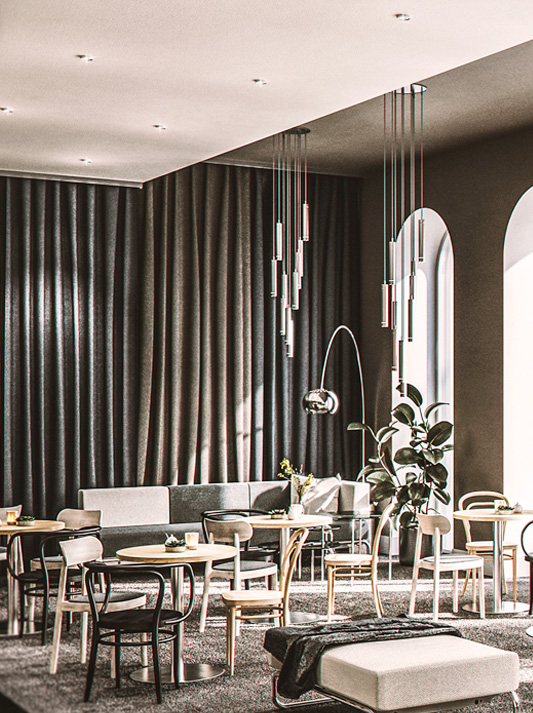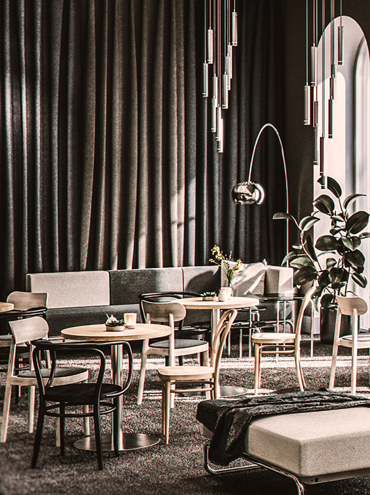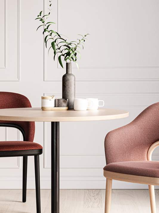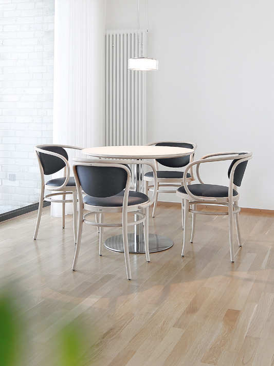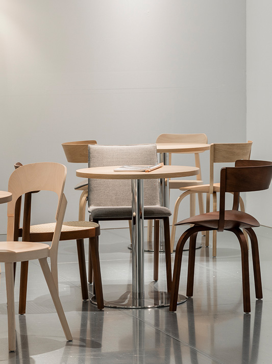 James Irvine has developed tables to match the barstool S 123. They are formally reserved, robust and easy to care for – and therefore perfectly suitable for the contract segment. With their different heights, tabletop shapes and surface versions, they fit into any environment.