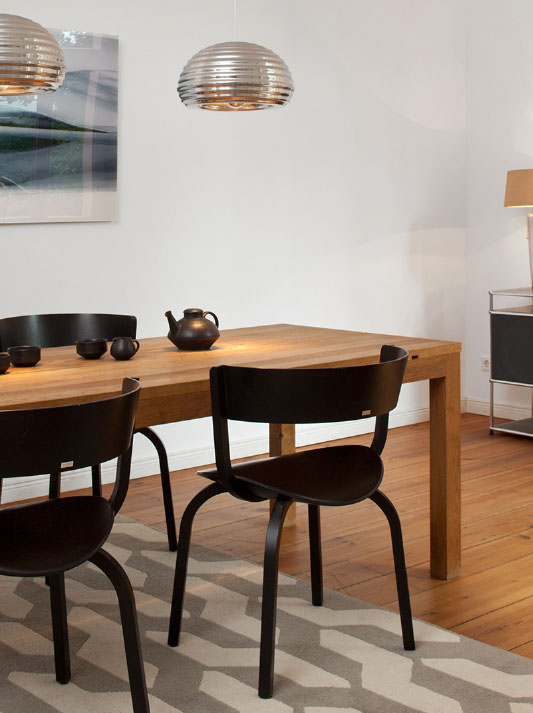 Stefan Diez has designed a wooden chair range that can be traced back to our bentwood heritage but has transformed it through the use of aesthetical and technological criteria. Bent chair legs and armrests merge in a "knot" and are embedded into the ergonomically shaped seat from underneath. With a suspenseful contrast between the elegantly curved wooden elements and the striking upholstery, the range communicates and also offers comfort: it does not prescribe a specific sitting posture, and the organically shaped backrest flexes for extra comfort.