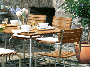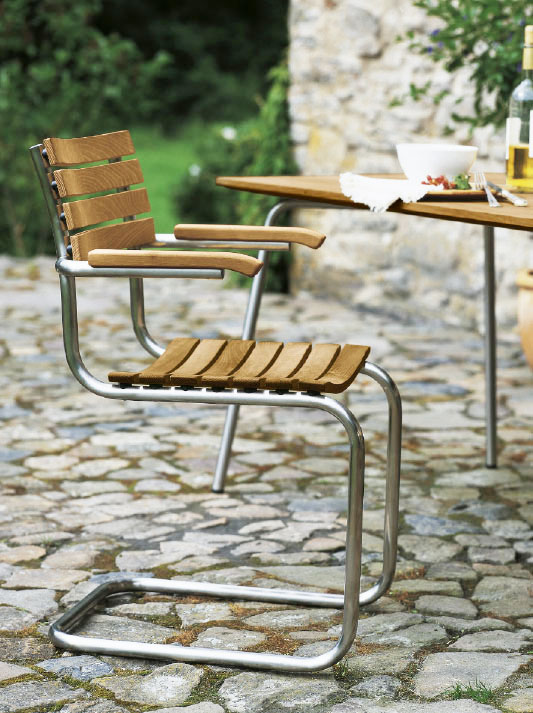 Garden chairs: clear and reserved in their form, with ideal sitting comfort