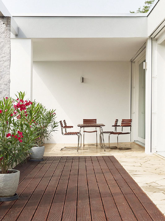 Garden chairs that match the classic S 43 by Mart Stam in their construction and design: clear and reserved in their form, with ideal sitting comfort and high quality with respect to materials and processing. Under the model name B 33 g (g = garden) these chairs were first presented in the 1935 Thonet catalog. Today, the wooden strips are made of solid Iroko, an African wood with a high density and weather resistance (FSC seal). It is similar to teak in appearance and has a smooth, even surface. All wooden parts are oiled for protection. The table S 1040 matches these chairs.