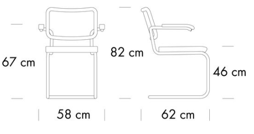Among the tubular steel furniture models, the cantilever chair S 32 is especially versatile. It is at home in various design worlds and fits in with uncompromisingly modern interior design as well as in a diversified mix that gives space to different epochs and styles. The cantilever chair S 32 and the version S 64 with armrests are the most famous tubular steel classics. The appealing combination of new and old contribute to their popularity: Thonet’s tradition in the production of bentwood furniture with characteristic Vienna wickerwork, in contrast with the revolutionary use of tubular steel. Seat and backrest made of bent solid wood with wickerwork represent tradition, and the frame represents the present and future. With their versatility, they became bestselling cantilever chairs and still are today. Marcel Breuer designed the S 32 and S 64 during his time in Berlin in 1928. Thonet has been producing both models since 1930.