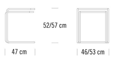 Elegant, flexible and suitable for a variety of uses. In its dimensions, the table set B 97 is reminiscent of Marcel Breuer’s nesting table B 9. Its altered construction, however, offers a practical advantage: due to the opening on one side, the tables can be pulled over the edge of a sofa, armchair or bed. They can also be conveniently pushed into one another. The Thonet design from 1933 is among the classics of tubular steel furniture.
