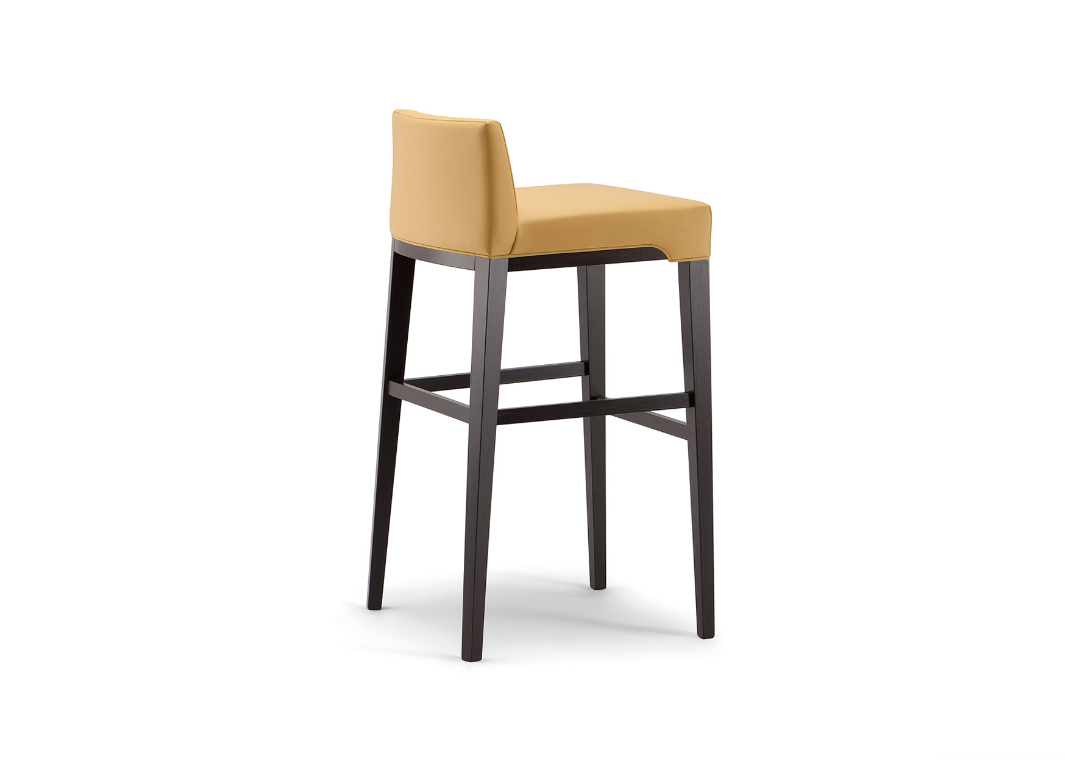 Memorie del '900 e rigore formale contemporaneo, convivono piacevolmentein un'ideale armonia fra il legno, il tessuto e il metallo.Lo sgabello Ginevra rappresenta un'ottima soluzione per arredare coneleganza ristoranti hotel. La cornice in legno massello, cosi come le gambe.racchiudono un sedile e uno schienale sapientemente imbottitj.in questa versione la seduta presenta un dettaglio forato sia nella parteinferiore che superiore dello schienale.